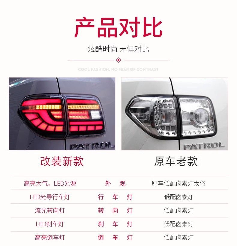 - Complete Set & Value: Includes a full tail light assembly (sold per piece) for a significant visual and functional upgrade, offering long-lasting performance and improved safety for your Nissan Patrol Y62.