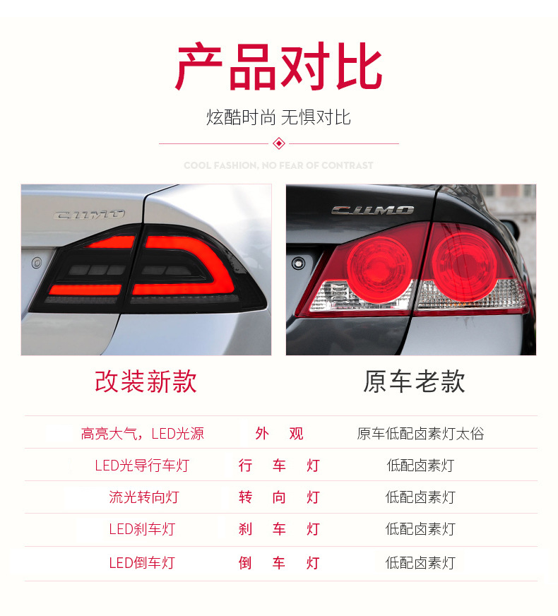 LED Tail Light Assembly with Flowing Turn Signal DRL for Honda Ciemo FD2 Civic