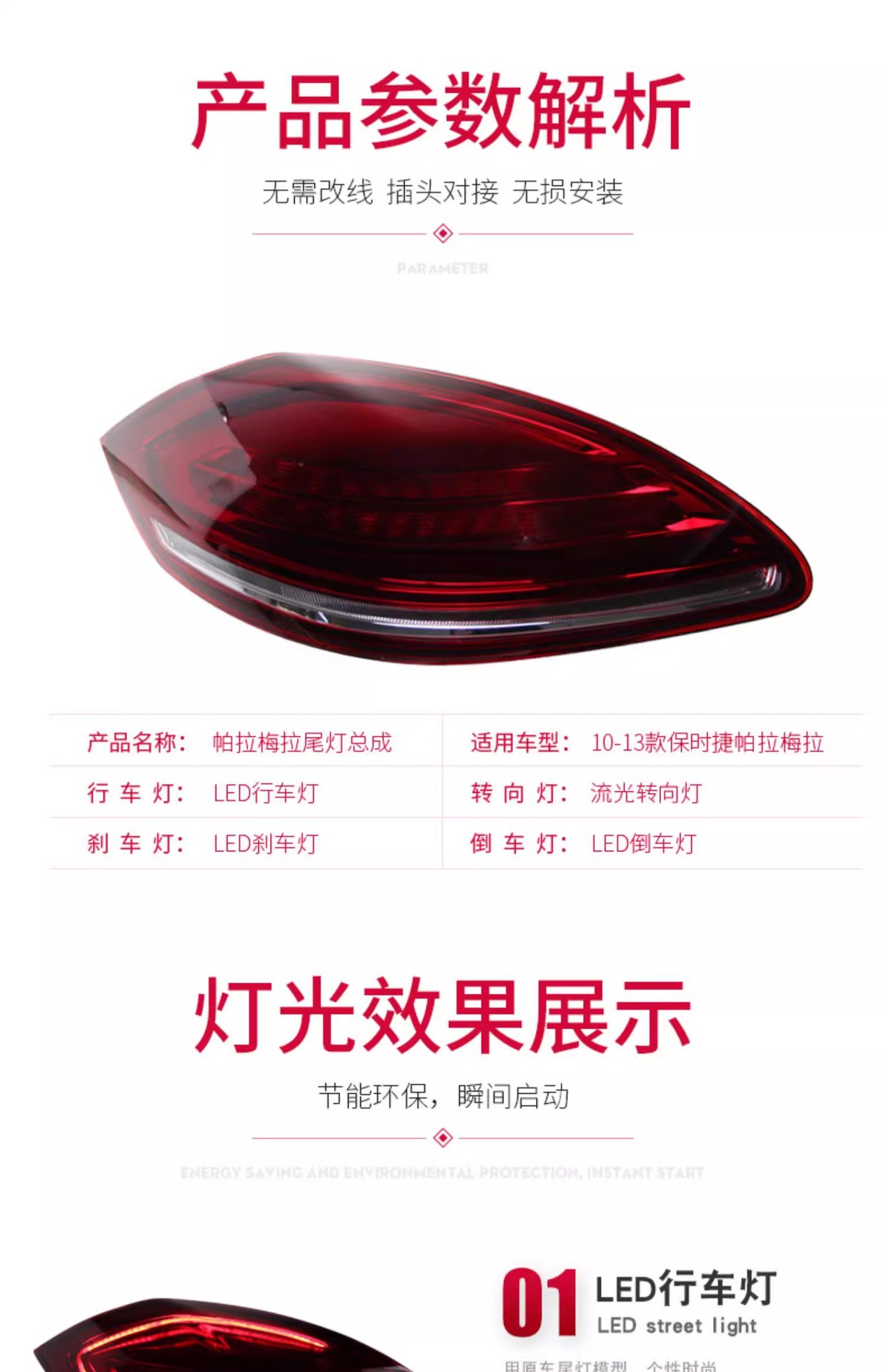 LED Tail Light Assembly with Flowing Turn Signal for Porsche Panamera 2010-2013