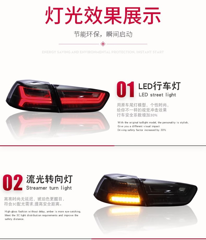LED Tail Lights Assembly Audi Style Running Brake Flowing Turn Signal for Mitsubishi Lancer