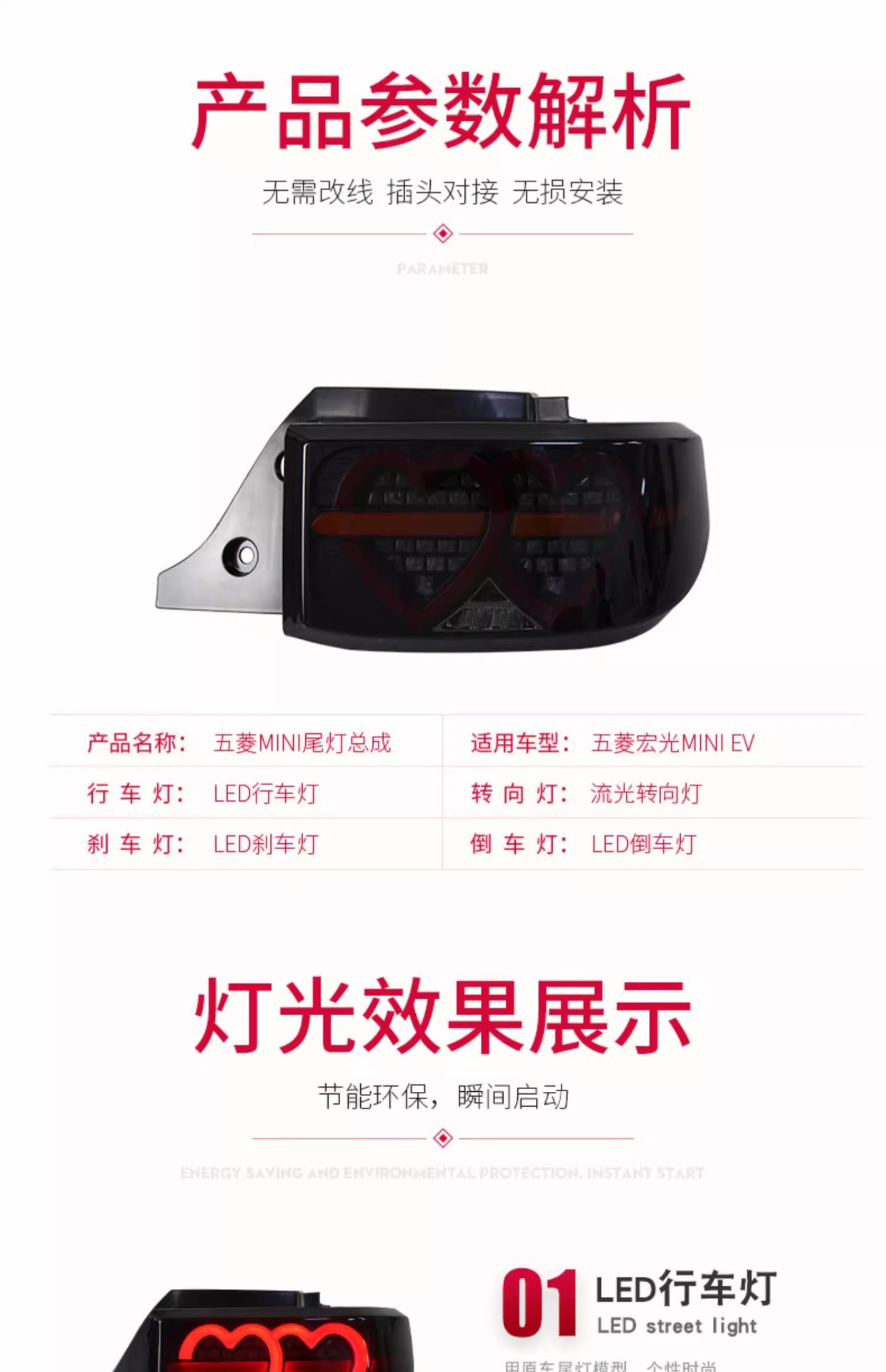 LED Taillight Assembly Angel Eye Sequential Turn Signal Light for Wuling Hongguang Mini Macaron