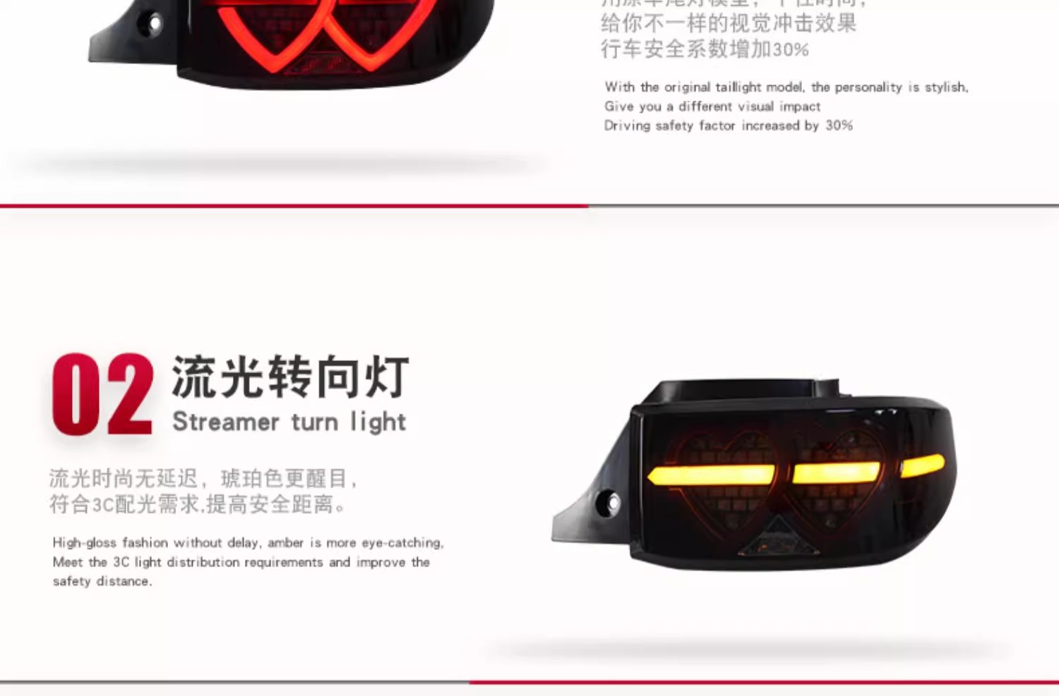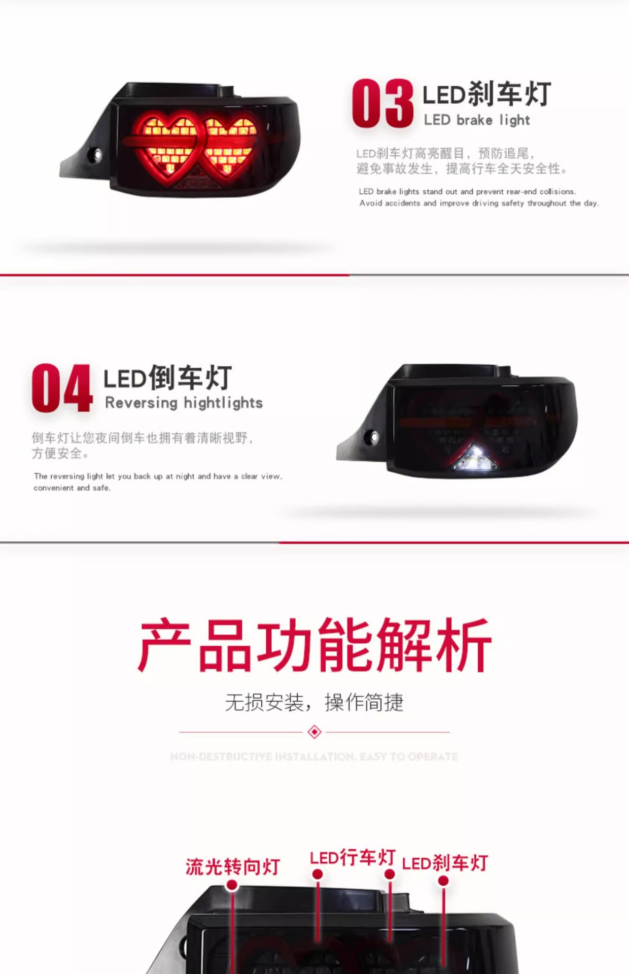 - Stylish Design Upgrade: Unique Angel Eye and flowing sequential turn signal lights add a custom, fashionable touch to your vehicle. Elevate your car’s aesthetics with this eye-catching and modern taillight assembly.