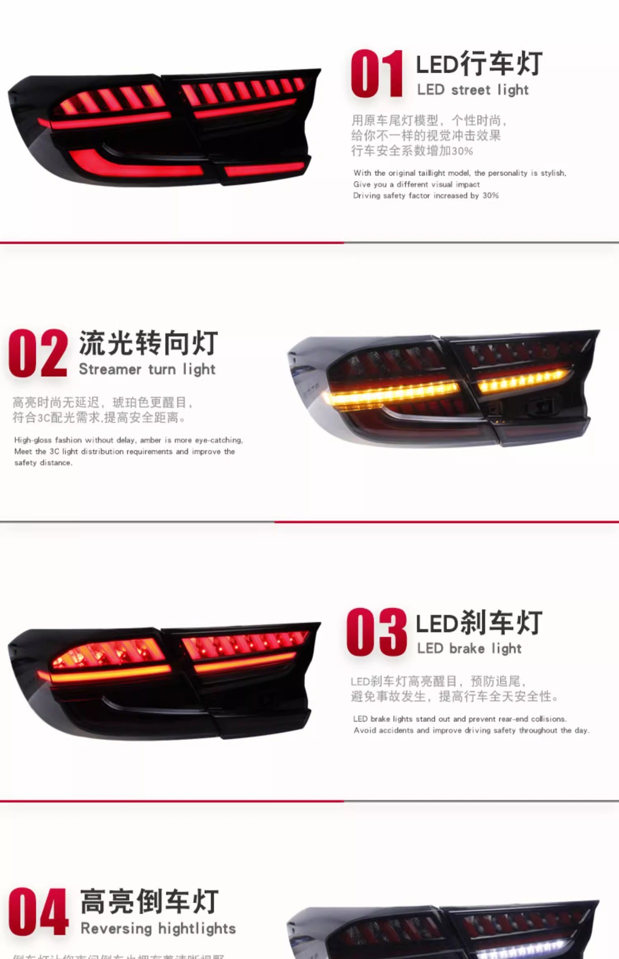 LED Taillight Assembly Audi-Style Sequential Flowing Turn Signal Brake Light for Honda Civic 10th Gen