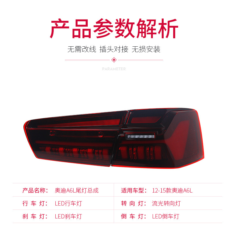 LED Taillight Assembly C7 Modified LED DRL Flowing Turn Signal Brake Light for Audi A6L (2012-2015)