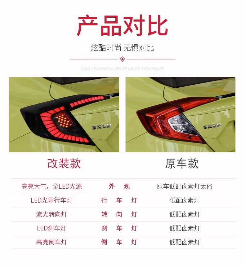 - Direct Fitment: A perfect replacement for Honda 10th Gen Civic. Features LED running lights and sequential turn signals.