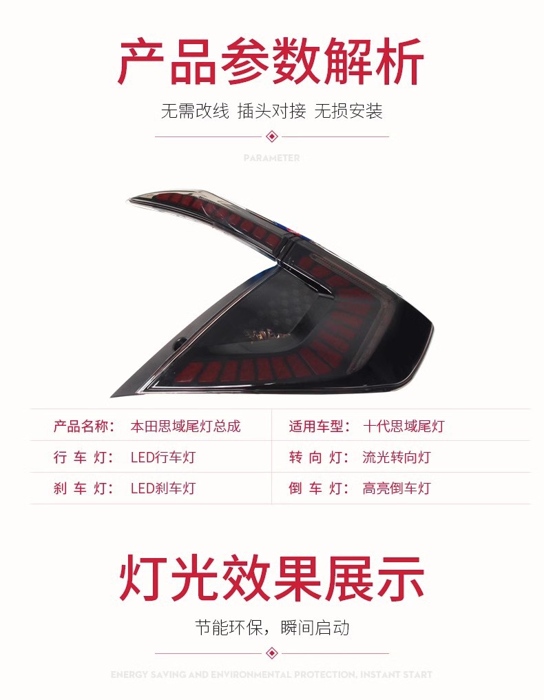 LED Taillight Assembly Dargon Scales Sequential Turn Signal for Honda 10th Gen Civic