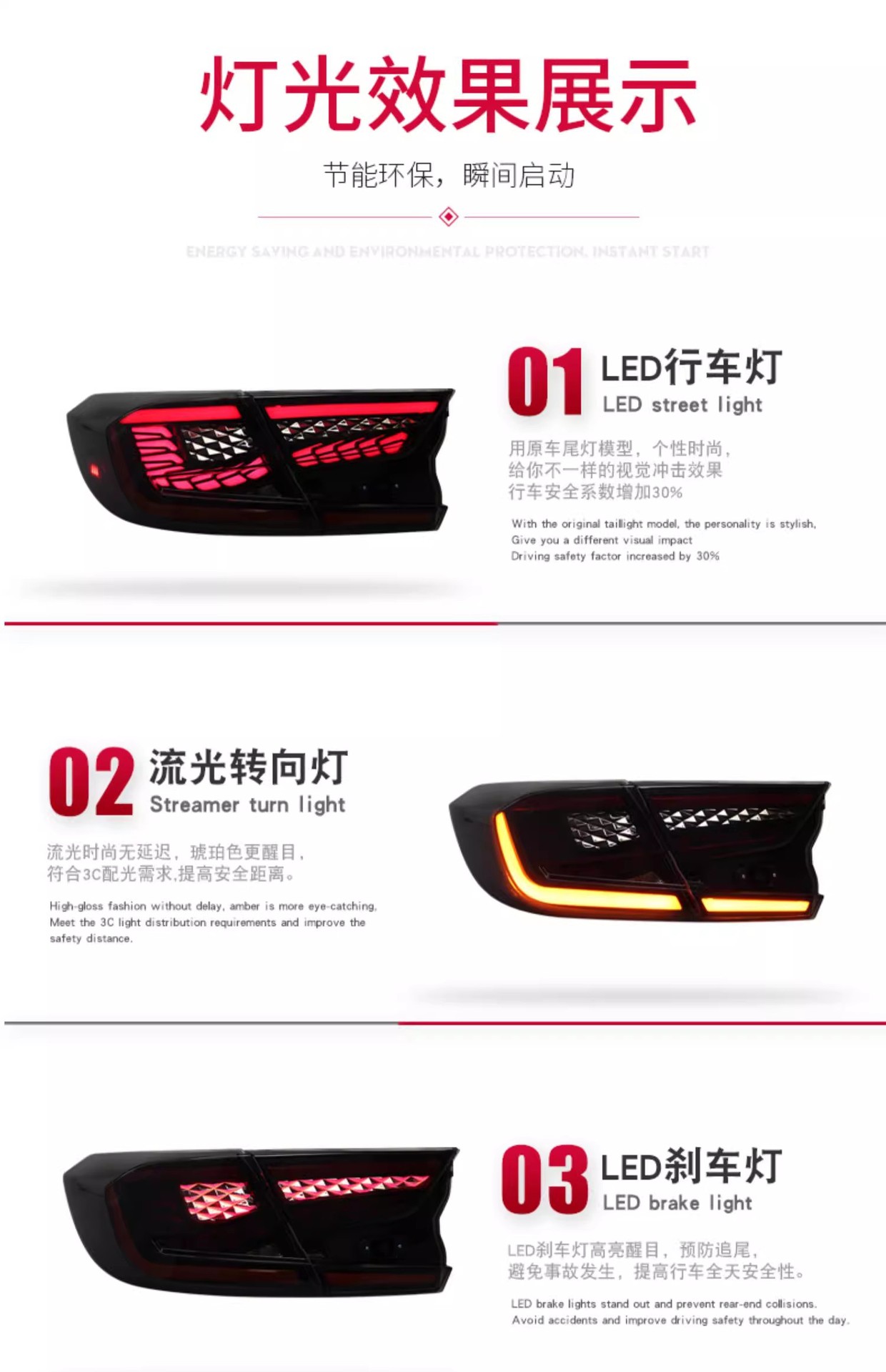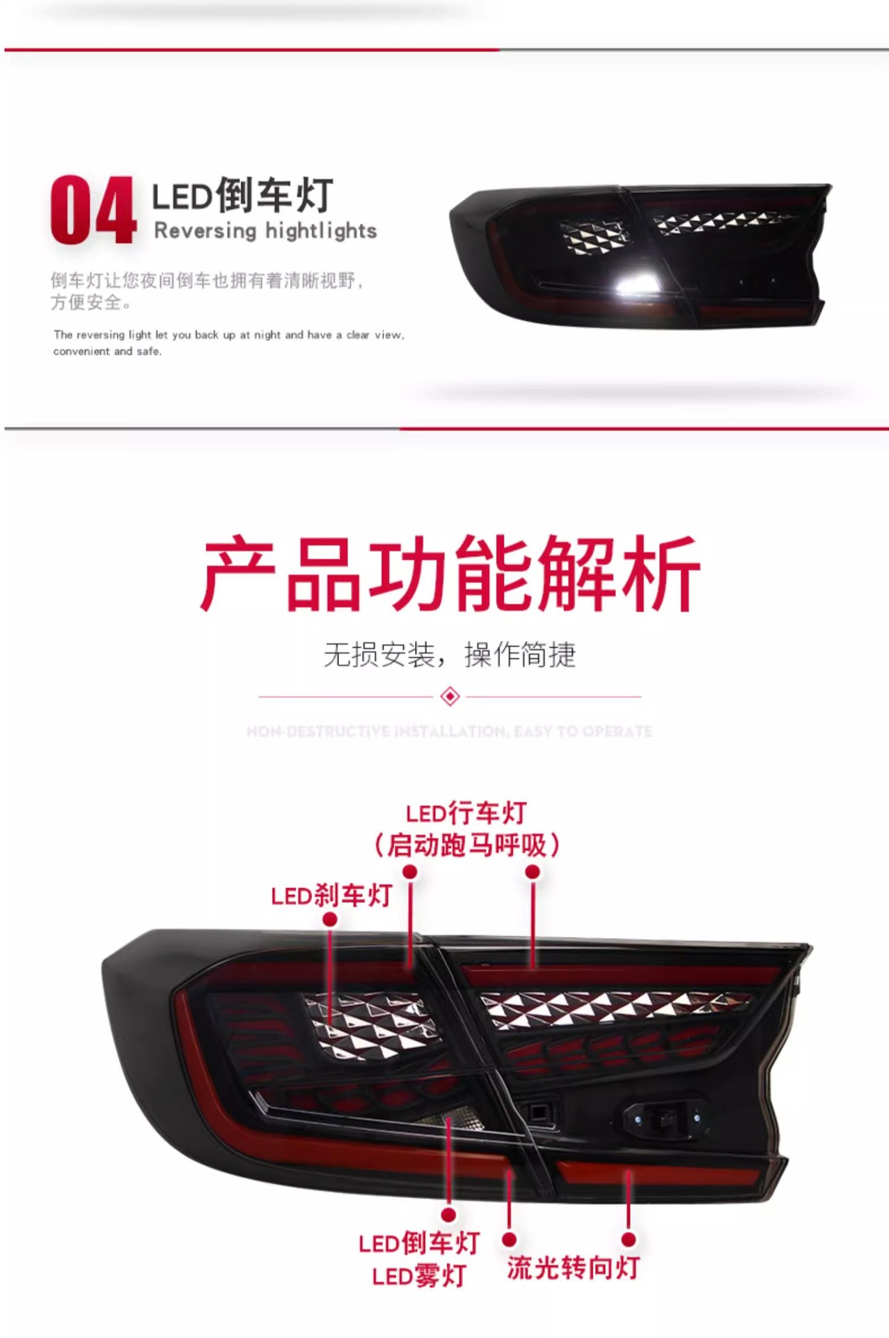 - Performance-Driven Design: Features LED Dragon Scale Running Lights, impactful Brake Lights, and dynamic Sequential Turn Signals, visible in the image, to significantly improve vehicle visibility and safety.