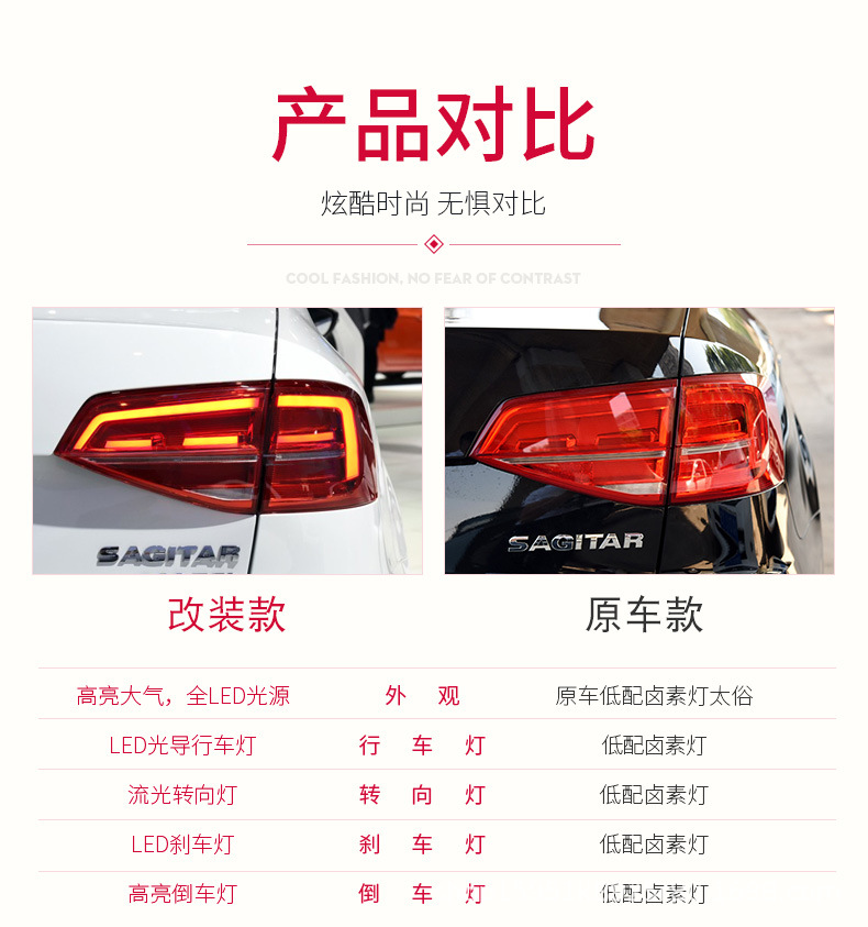 - Complete Set Included: Package contains a complete set of taillight assemblies (left and right), providing everything needed for a comprehensive upgrade to enhance both the look and functionality of your Volkswagen New Sagitar taillights.