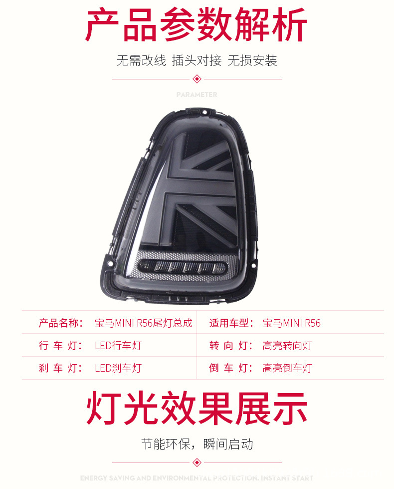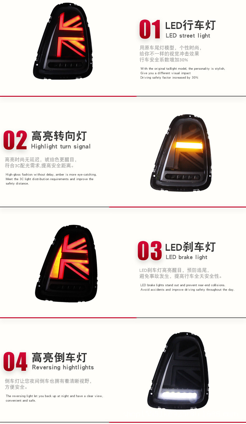 - Stylish Design Upgrade: Incorporates a unique Union Jack LED pattern, available in smoked, red-black, or classic red finishes, to significantly upgrade your MINI’s aesthetic appeal and personalize its style.