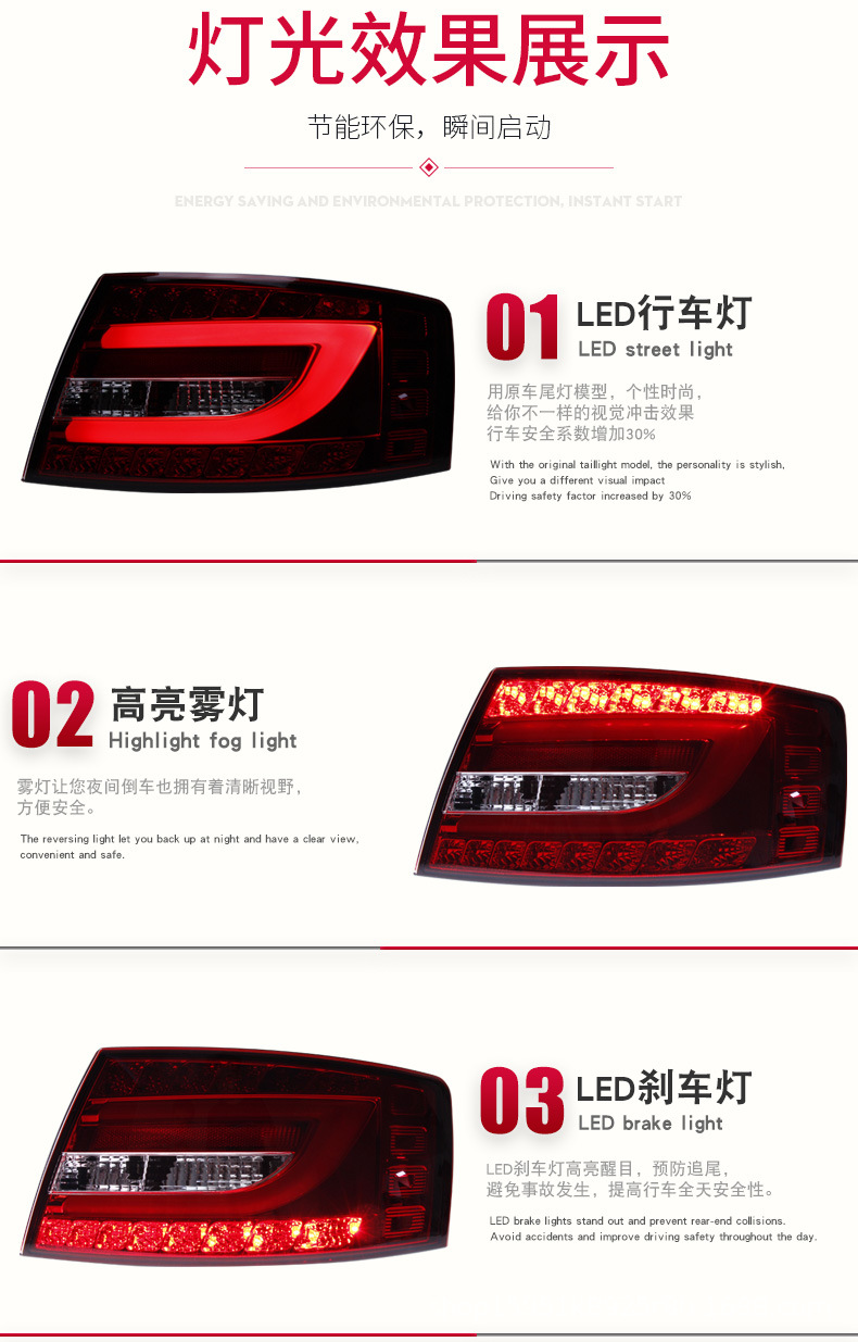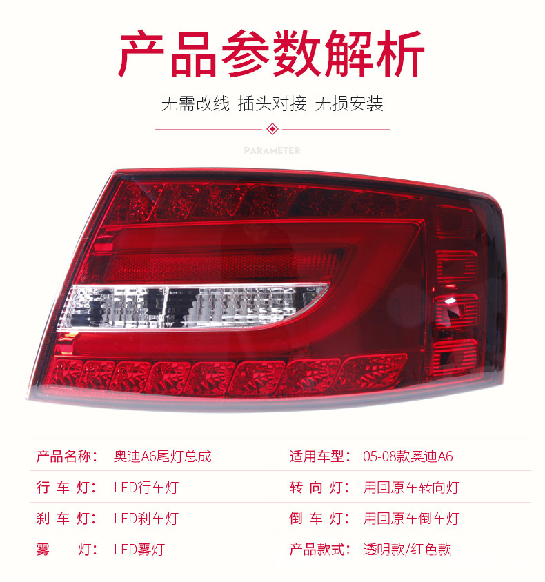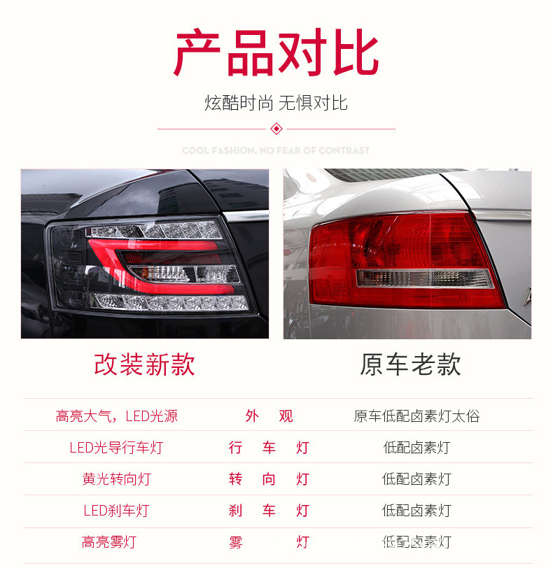 LED Taillight Assembly Rear Brake Light Turn Signal Fog Lamp for Audi A6L (2005-2008)