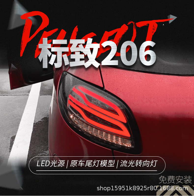 LED Taillight Assembly Reversion Brake Signal Flowing Turn Lights for Peugeot 206 207 Sedan
