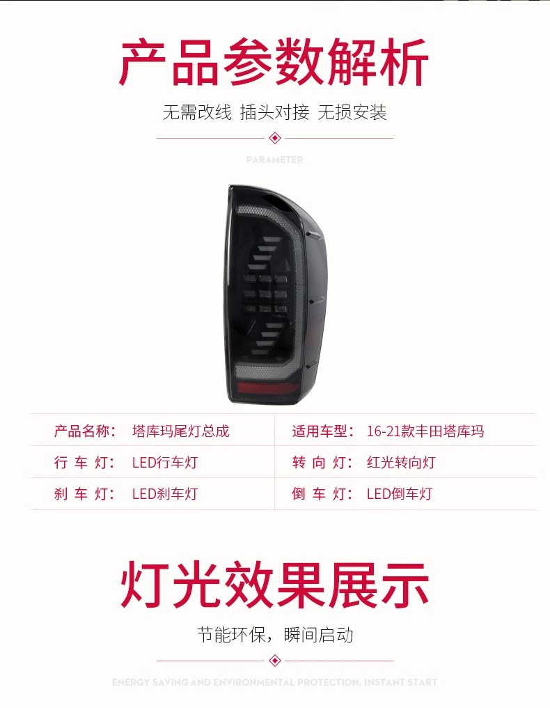 - Package Includes: Each package contains one LED taillight assembly (single side). Upgrade your Tacoma’s rear lighting for a distinct look and improved functionality.