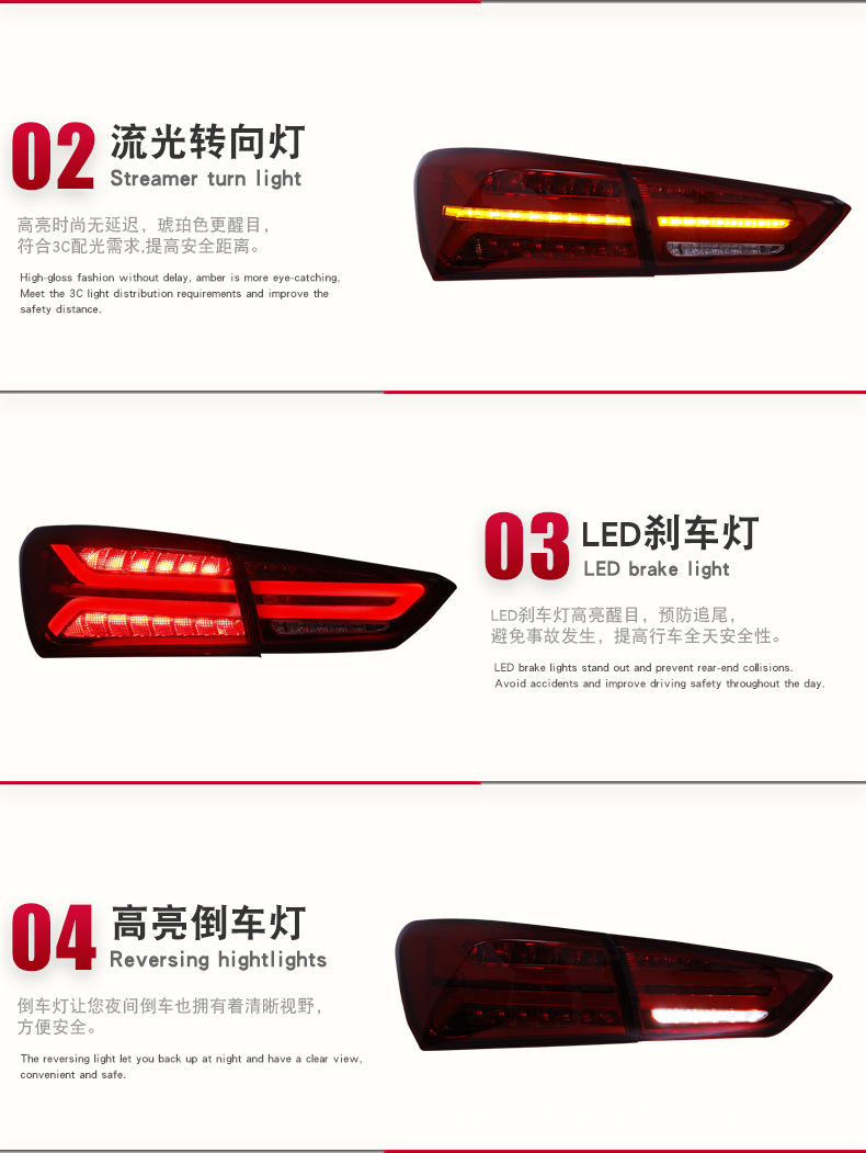- Dynamic Streamer Turn Signal: Incorporates a modern Audi A6L-style flowing turn signal effect, adding a distinctive and upscale aesthetic to your vehicle’s rear.