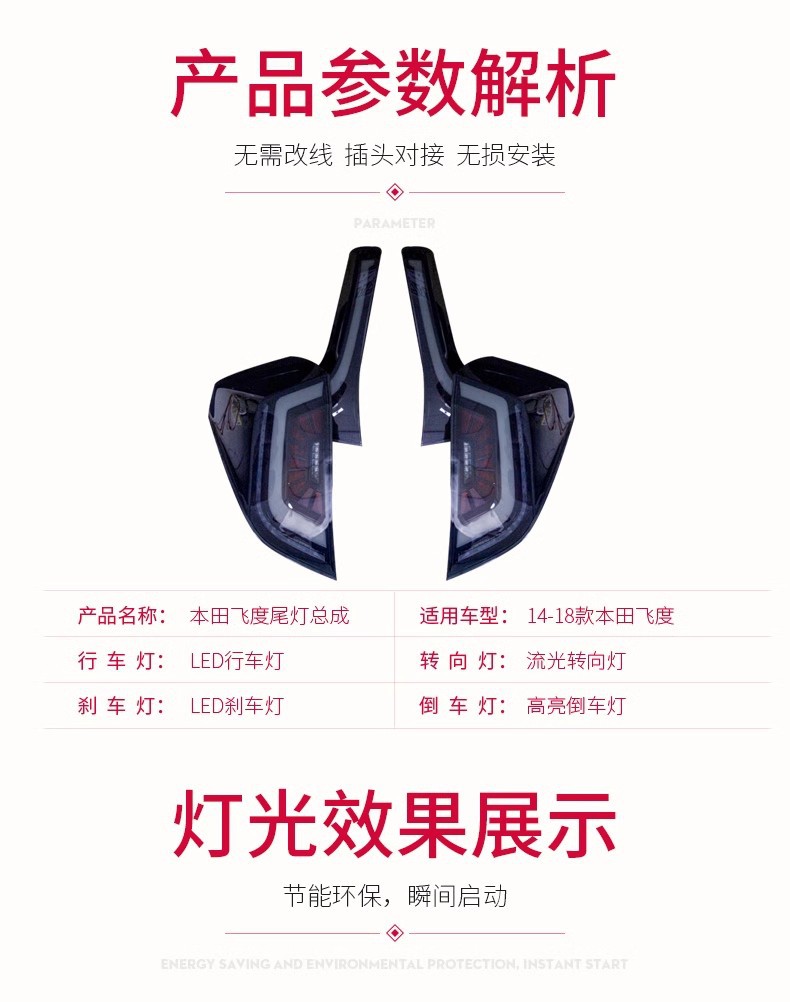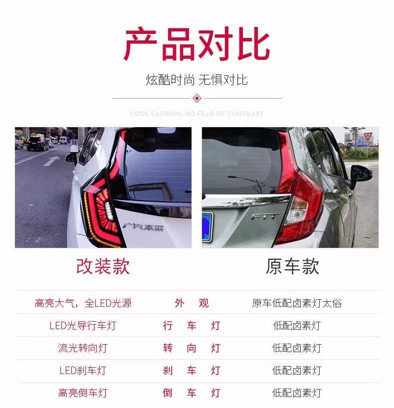 Rear LED Tail Light Assembly (Flowing Light, Brake, Turn Signal) for Honda Fit GK5 2014-2019