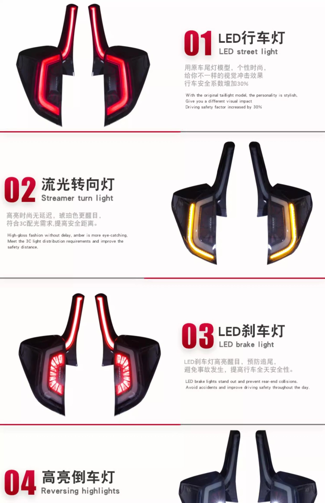 - Enhanced Styling: Upgrade your vehicle’s aesthetics with a modern LED taillight assembly, offering a sleek and distinctive look that enhances visibility and road presence.