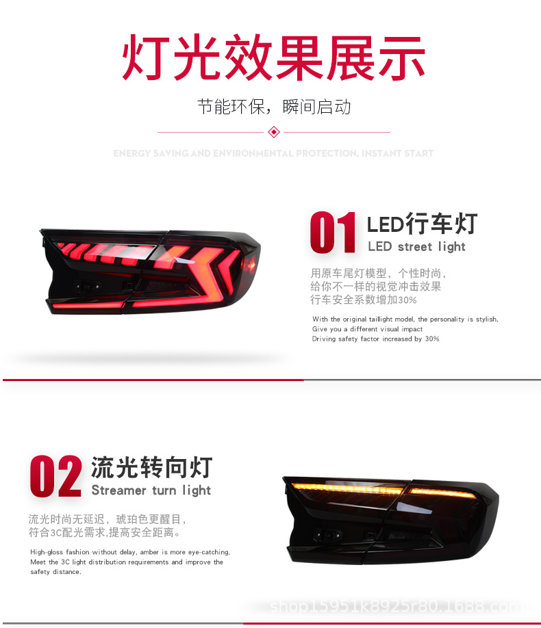 - Premium LED Technology: Features high-brightness LED lights for enhanced visibility, including dynamic sequential turn signals, distinct brake lights, and constant driving lights, offering superior performance and longevity.