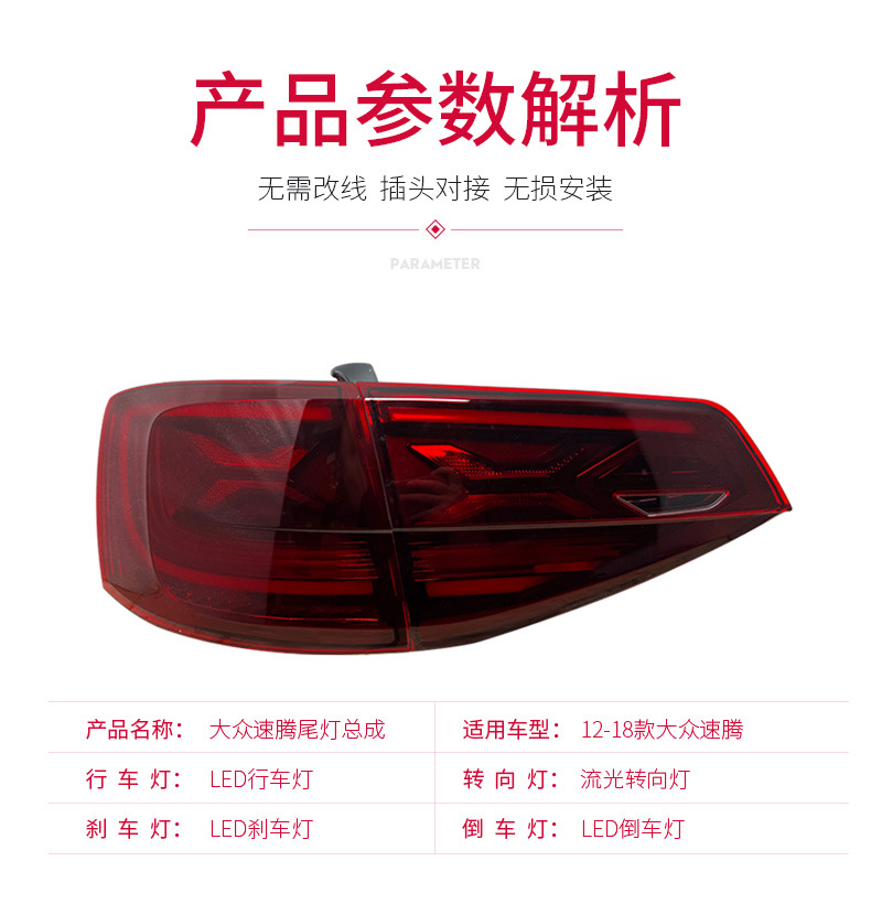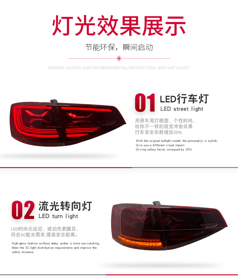 LED Taillight Assembly for 2012-2018 Volkswagen Sagitar with Running Light Brake Sequential Turn Signal