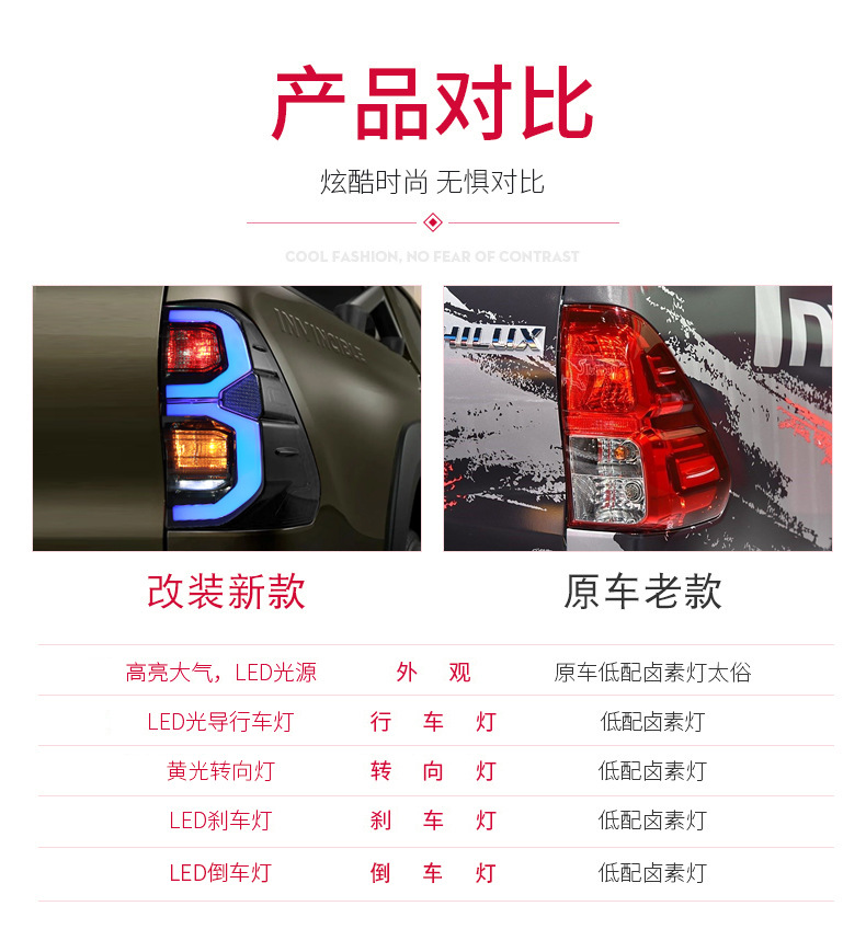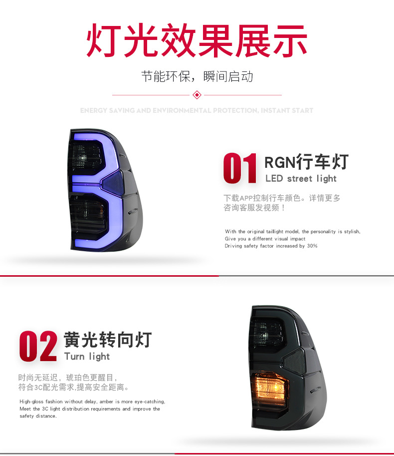 LED Taillight Assembly for 2015-2024 Toyota Hilux Revo Running Brake Light