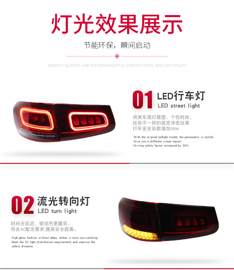 LED Taillight Assembly for 2016-2019 Mercedes-Benz GLC Class Series Daytime Running Light Brake Light Sequential Turn Signal