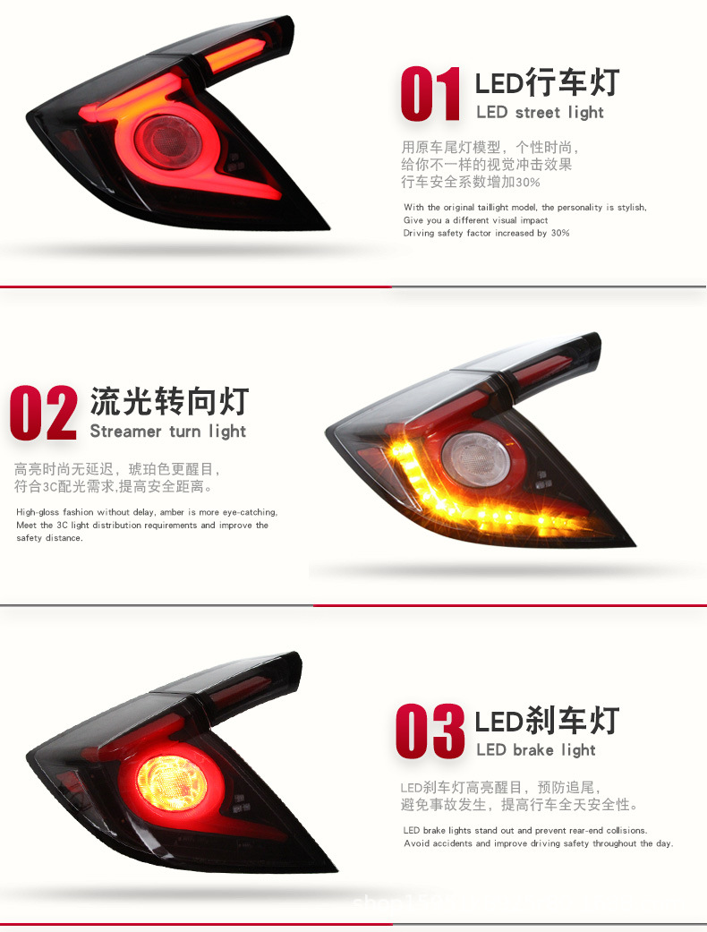 - Sleek & Modern Design: Upgrade your Civic’s exterior with a contemporary taillight assembly that adds a dynamic and stylish aesthetic, giving your vehicle a refreshed, two-box appearance.