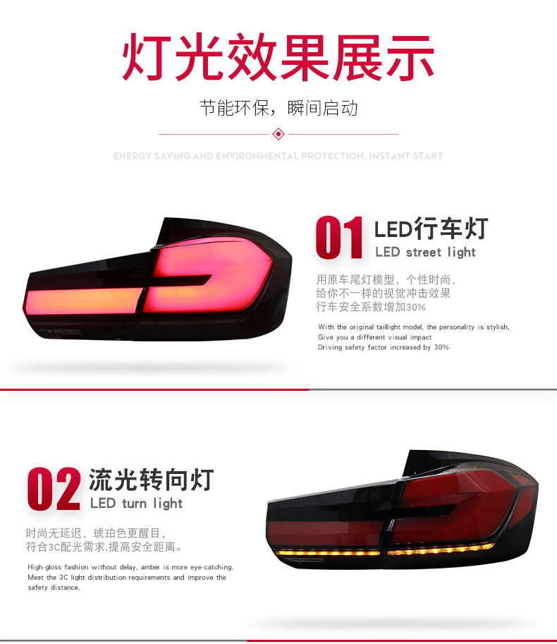 LED Taillight Assembly for BMW 3 Series F30 F35 LED Light Guide Running Brake Sequential Turn Signal Lamp