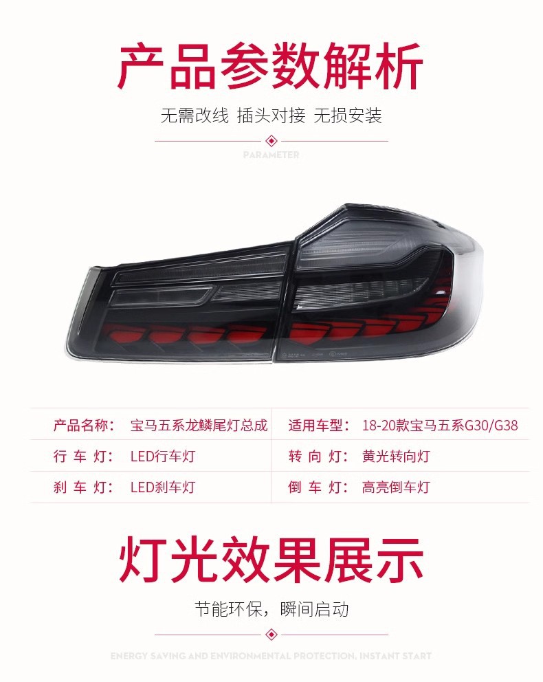 - Precise Fitment: Specifically designed for BMW 5 Series G38 and G30 models, covering production years from 2017 to 2021, ensuring a perfect and seamless integration with your vehicle’s rear lighting system.