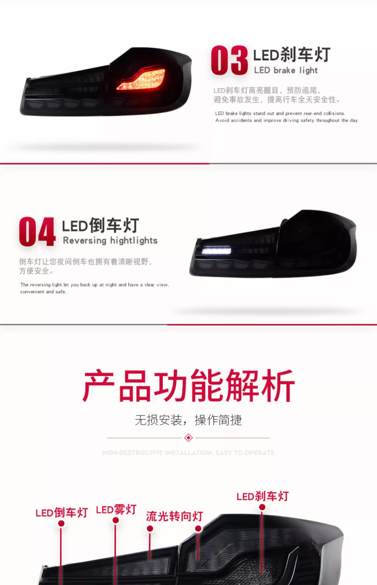 - Enhanced Styling: Features a distinctive ‘Dragon Scale’ LED design and dynamic sequential turn signals, upgrading your vehicle’s aesthetic with a modern and aggressive look.