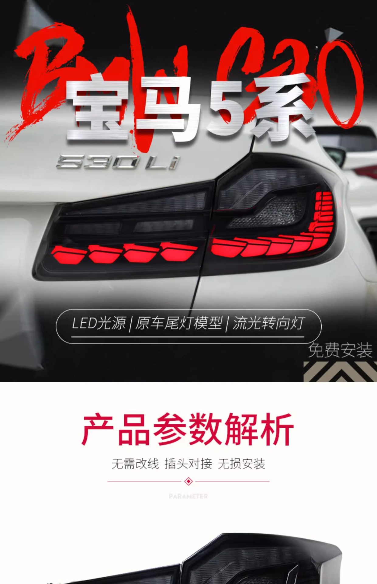 LED Taillight Assembly for BMW 5 Series G38 (2017-2022)