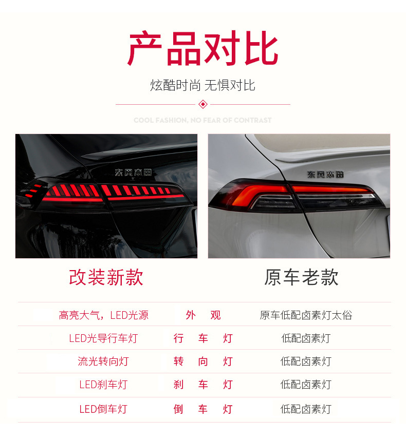 - Enhanced Aesthetics: Features a sleek design with integrated LED daytime running lights, brake lights, and dynamic sequential turn signals, elevating your vehicle’s appearance with modern styling.