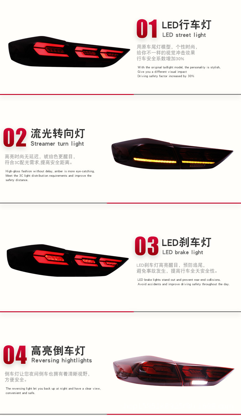 - Complete Set & Enhanced Safety: Includes a complete set of taillight assemblies for both sides, improving driving safety with superior light signaling and giving your car a customized, contemporary aesthetic.