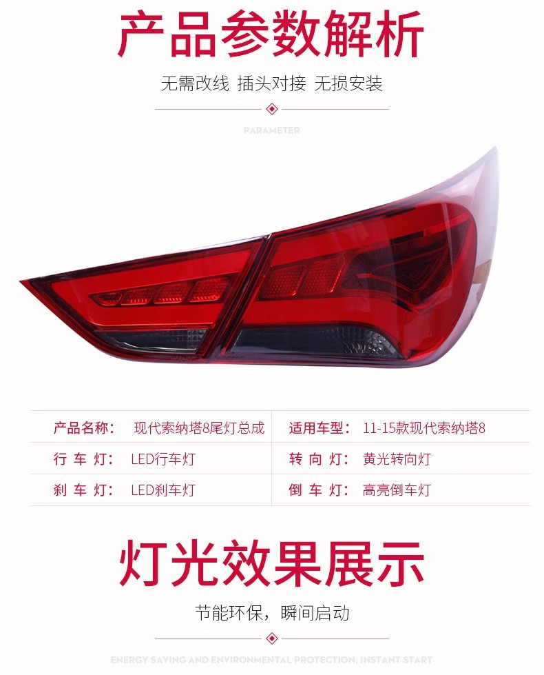 - Precise Fitment: Specifically designed for Hyundai Sonata 8th Generation (2011-2014) and Sonata 索八 models, ensuring perfect compatibility and seamless integration with your vehicle’s original tail light assembly.