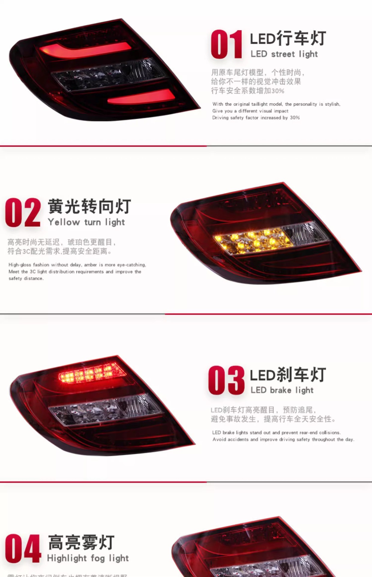 - Premium LED Illumination: Constructed with high-quality ABS+LED materials, providing bright, efficient, and long-lasting LED light sources for enhanced visibility and safety on the road.
