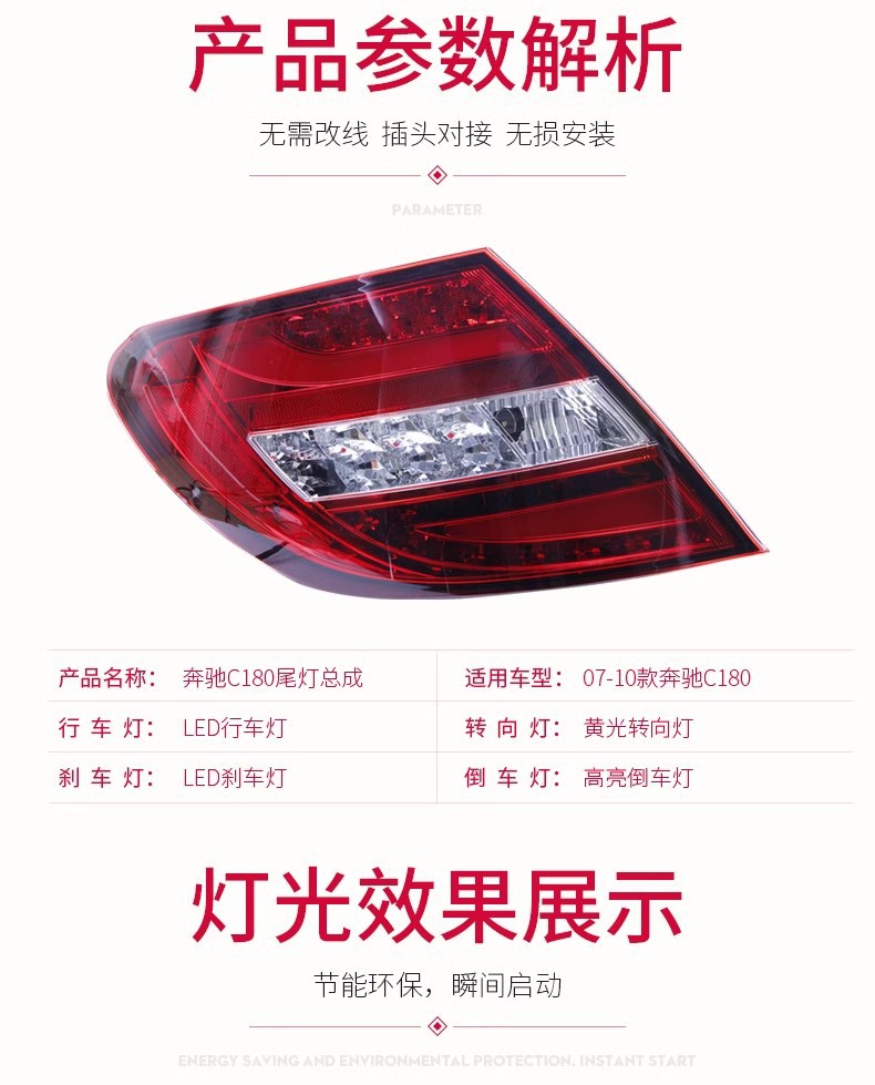LED Taillight Assembly for Mercedes-Benz W204 C180 C200 C260 (2007-2010)