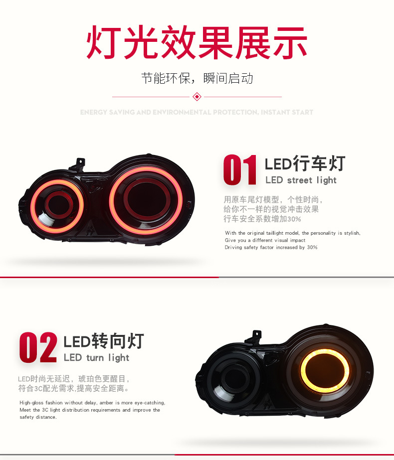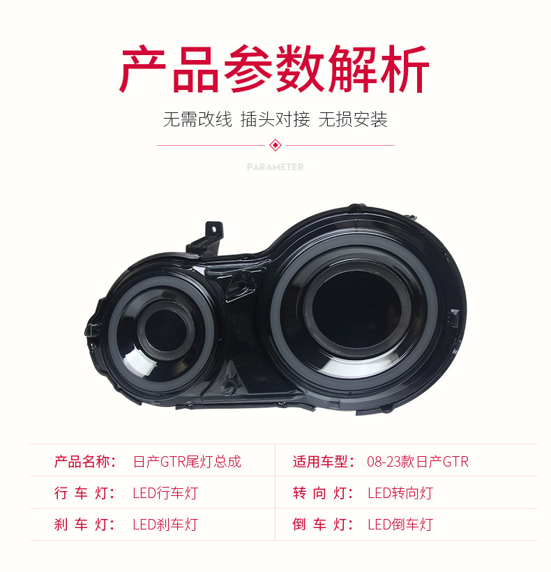 - Enhanced Styling: Features modern LED technology for running lights, turn signals, and brake lights, delivering a sleek, updated look to your GTR. The clear lens and precise light distribution improve visibility and give your car a distinctive, aggressive appearance.
