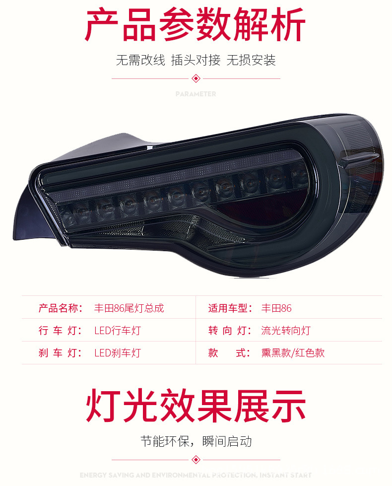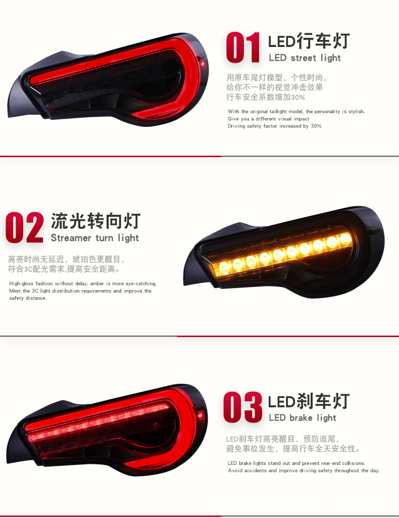 LED Taillight Assembly for Toyota GT86, Subaru BRZ (Flowing Turn Signal, Brake Lamp, Driving Lamp)