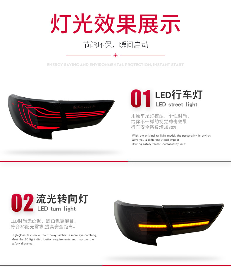 - Modern Aesthetic Design: Sleek black housing with vibrant LED elements, as shown, instantly upgrades your vehicle’s rear appearance with a contemporary and stylish look.