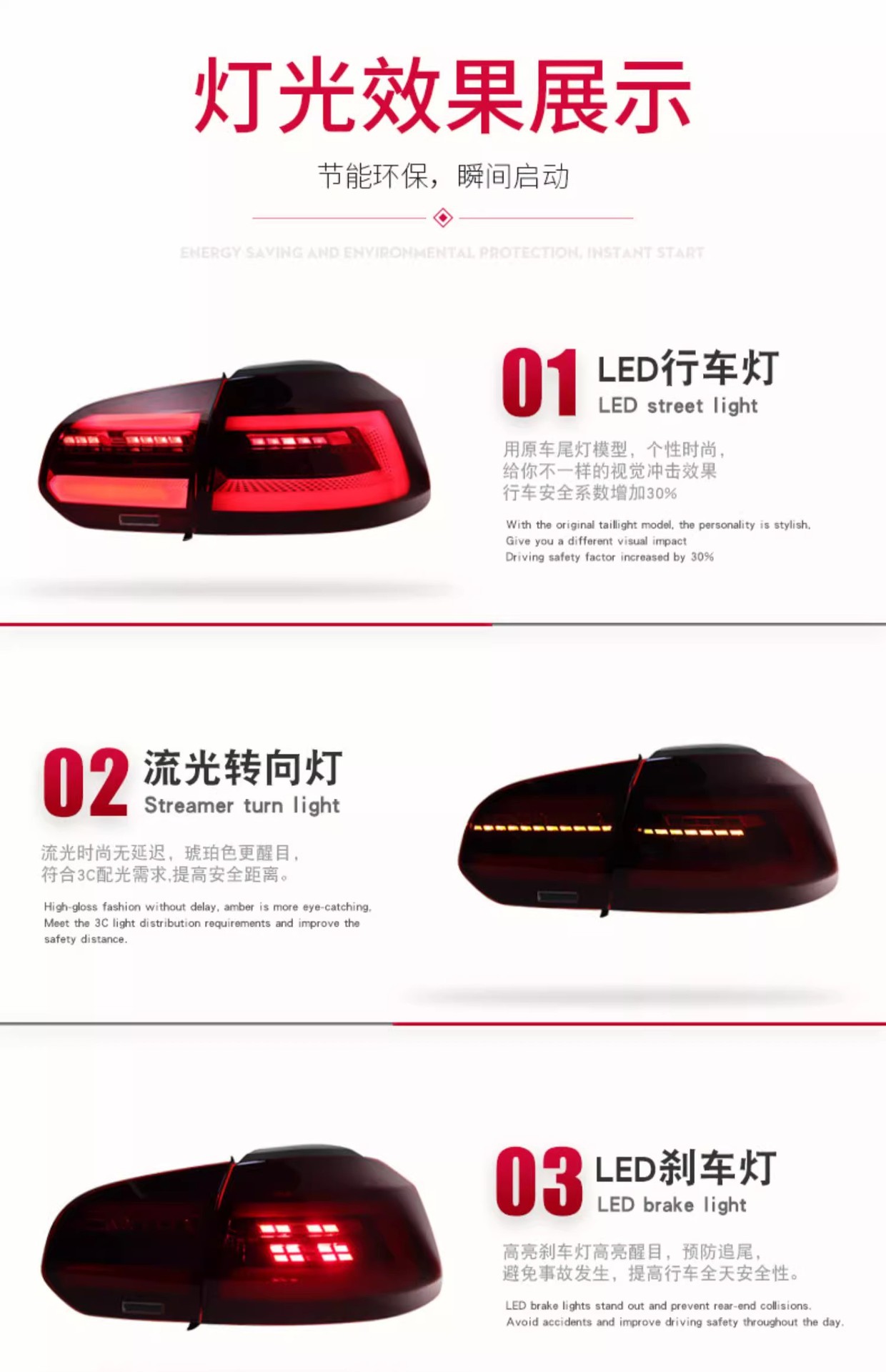 LED Taillight Assembly for Volkswagen Golf 6 Golf 8 GTI R20