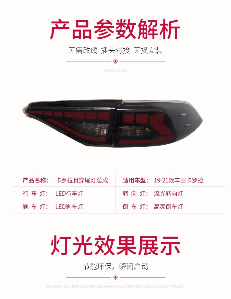 LED Taillight Assembly with Flowing Turn Signal for Toyota Corolla 2019-2021, Toyota Asian Lion