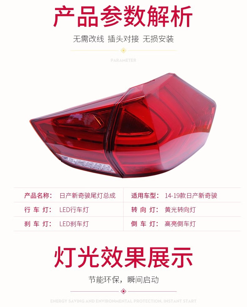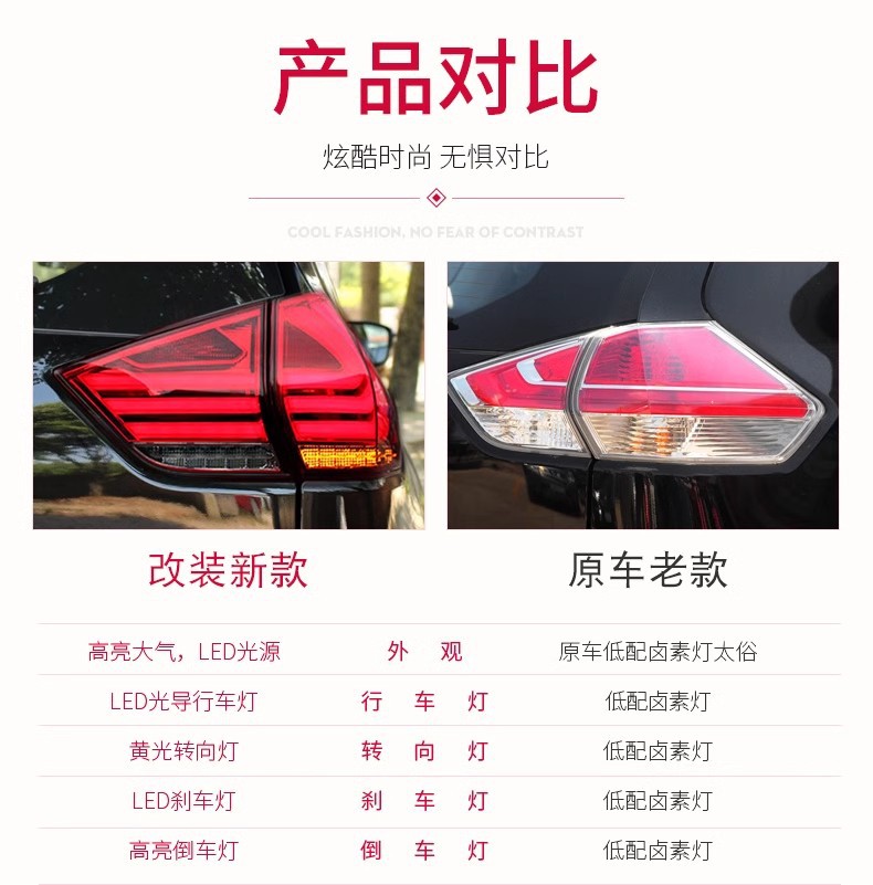 LED Taillight Assembly with LED Running, Brake, Turn Signal for Nissan X-Trail 2014-2019