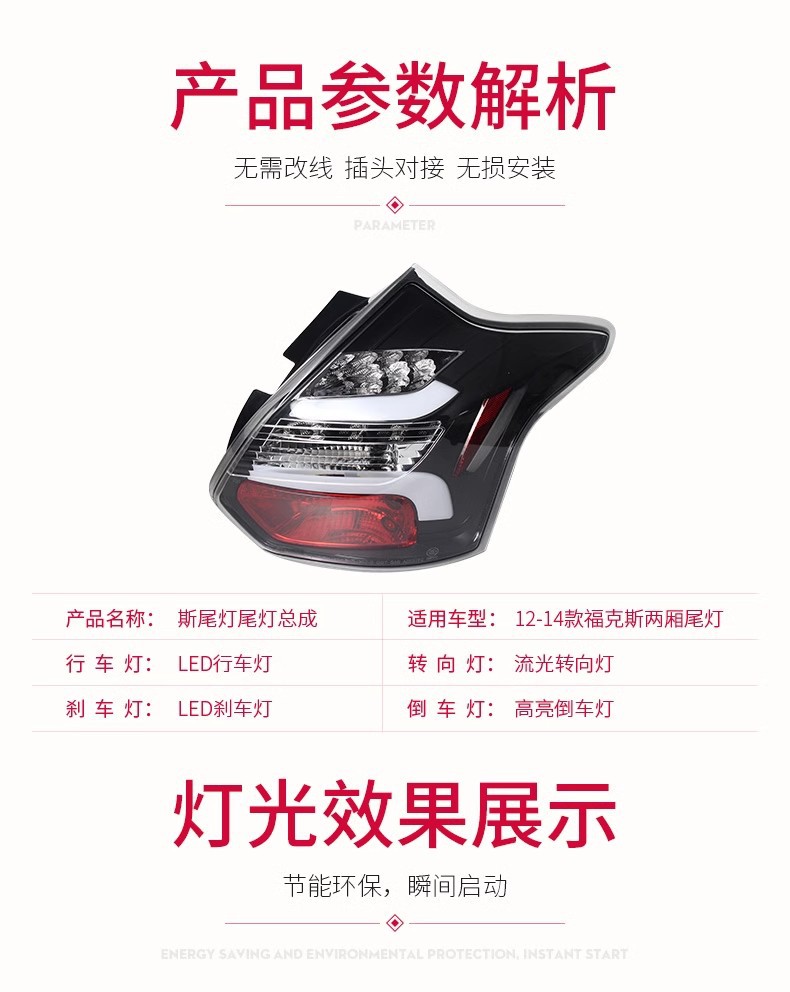 - Direct Fitment: A perfect replacement for 2012-2014 Ford Focus Hatchback models. Designed for precise integration with your vehicle’s existing tail light system.