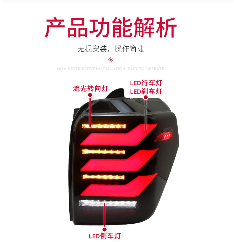 - Premium LED Illumination: Features distinctive red LED strips as pictured, providing enhanced visibility and a modern aesthetic for your 4Runner’s tail end.