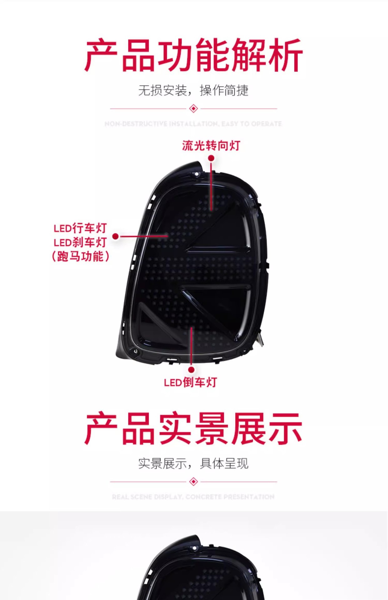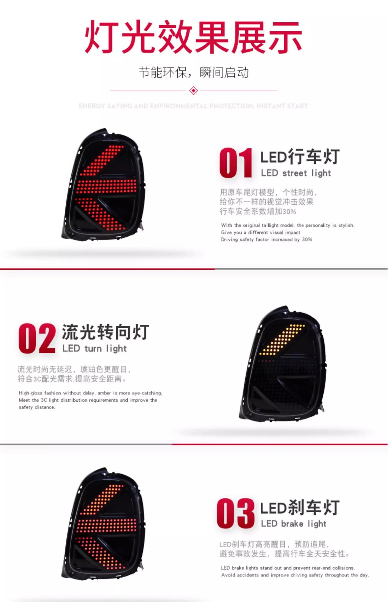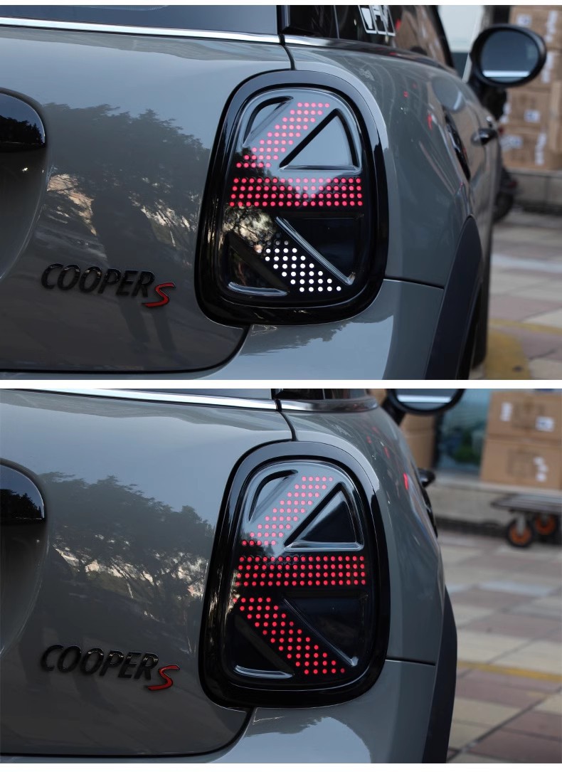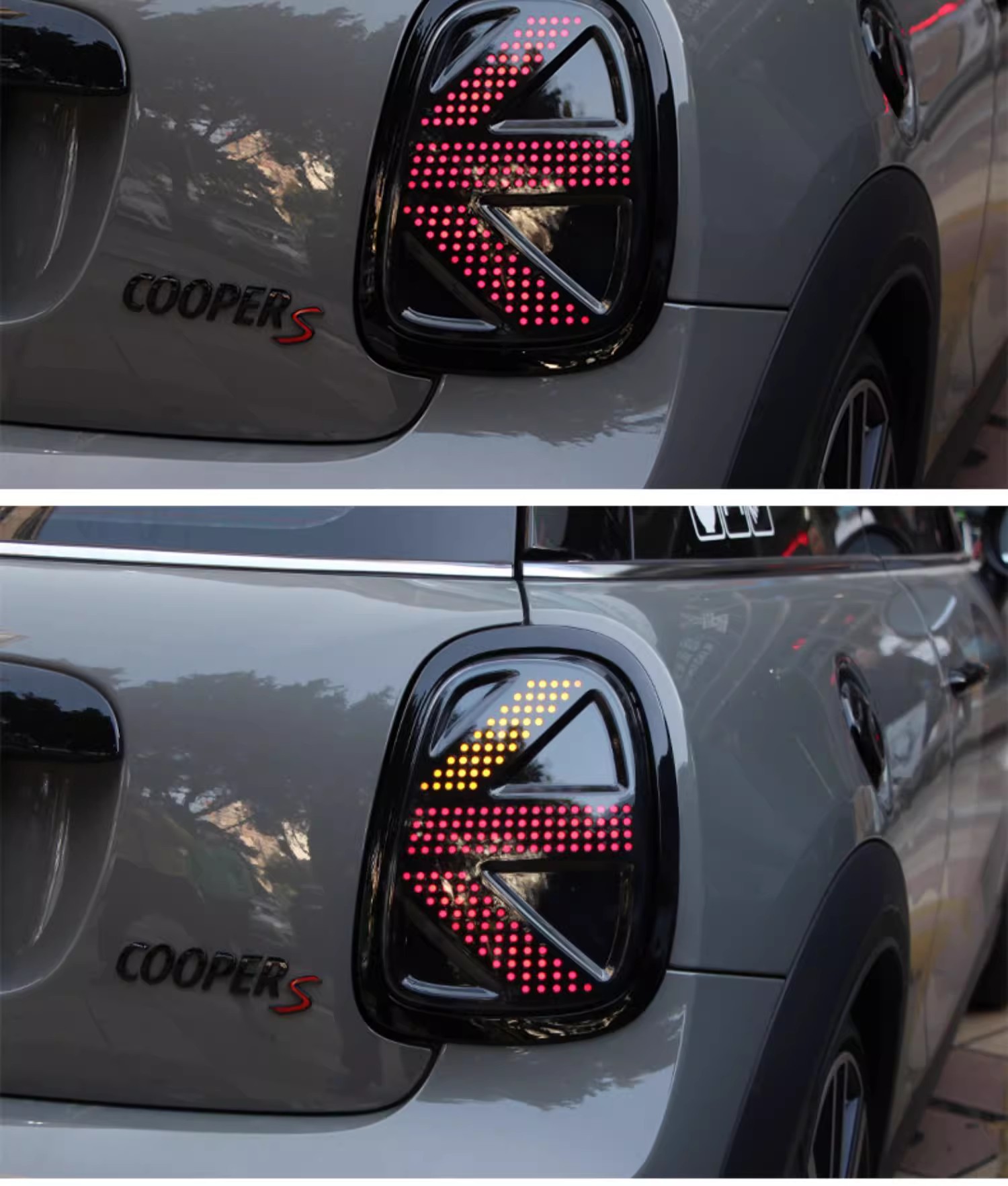 - Iconic Union Jack Design: Featuring a stylish Union Jack pattern with dynamic sequential turn signals, these LED taillights enhance your Mini Cooper’s aesthetics and provide a distinct, modern look that stands out.