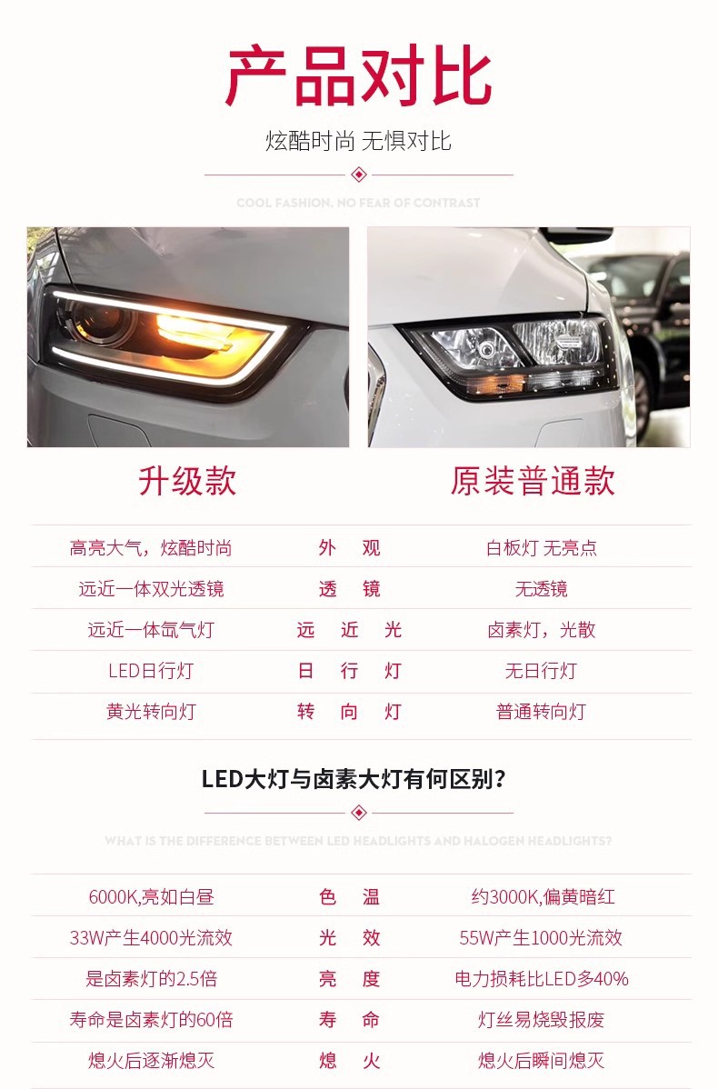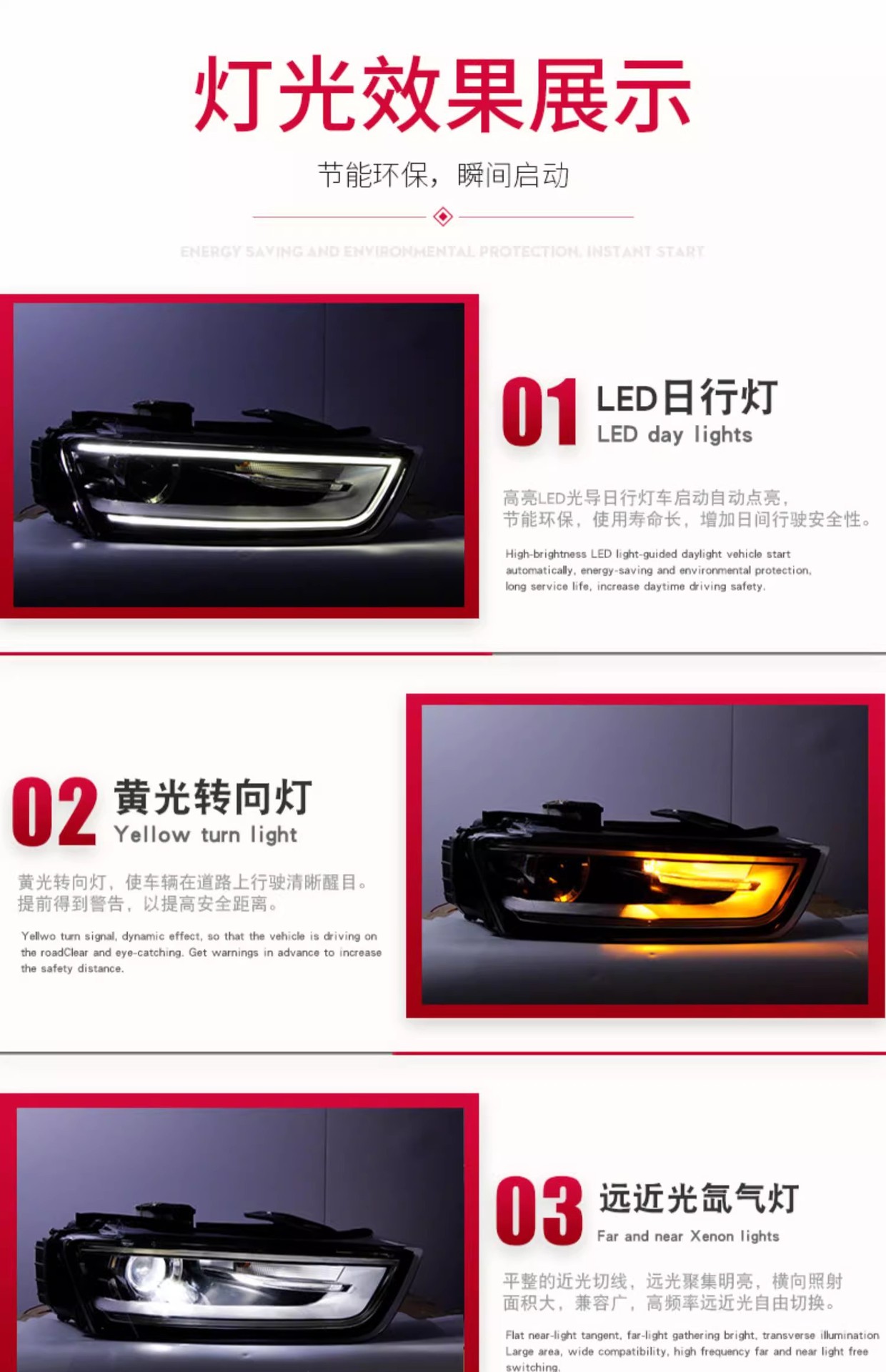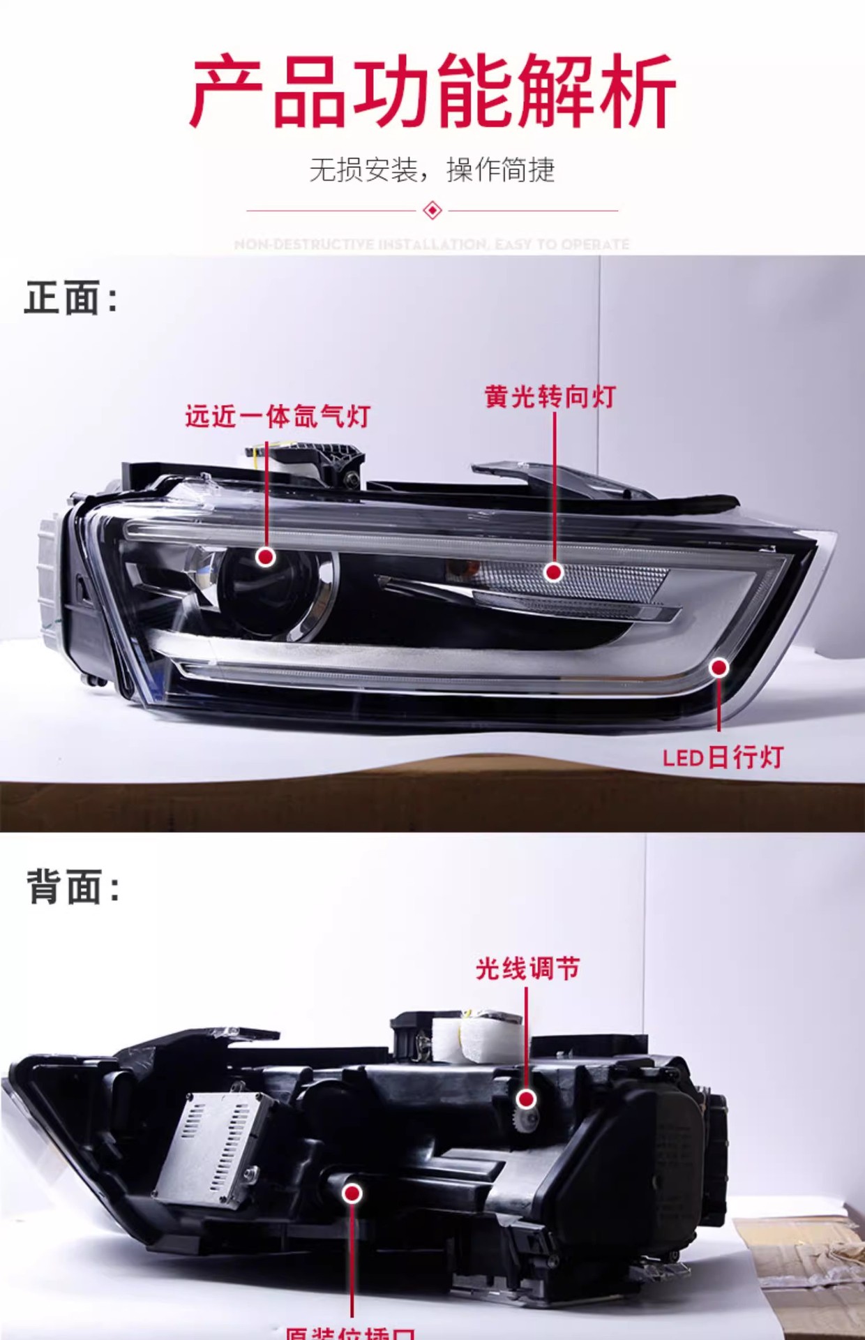 - Enhanced Aesthetics: Upgrade your Audi Q3 with a sleek LED daytime running light and projector lens xenon headlight design, providing a modern and high-end appearance.