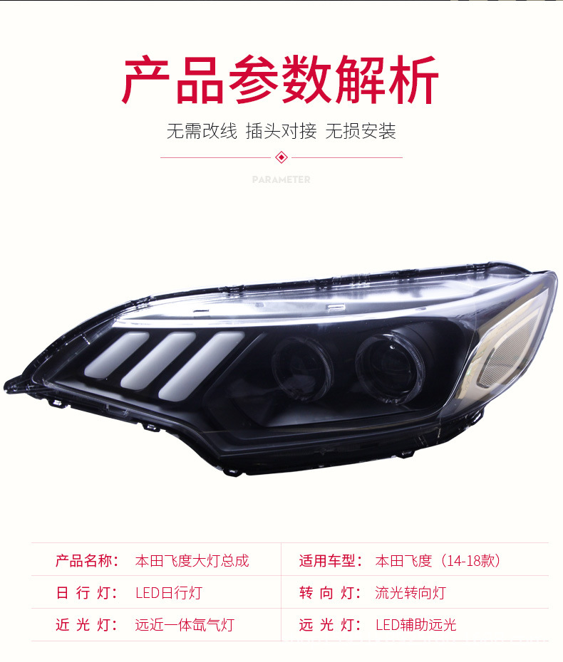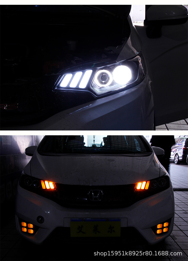 LED Xenon Headlight Assembly with Mustang DRL Projector Lens for Honda Fit GK5 (2014-2020)