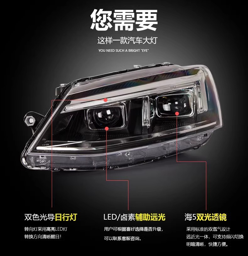 LED Xenon Projector Headlight Assembly with DRL Signal Light for 2012-2018 Volkswagen Sagitar Jetta