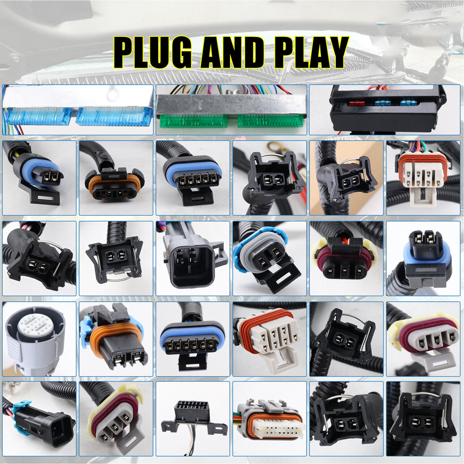 • Enjoy a straightforward, plug-and-play installation with clearly labeled wires and connectors, designed for effortless setup. This harness requires only four basic connections (switched power, constant power, and ground) to get your LS engine running efficiently, simplifying your build process.