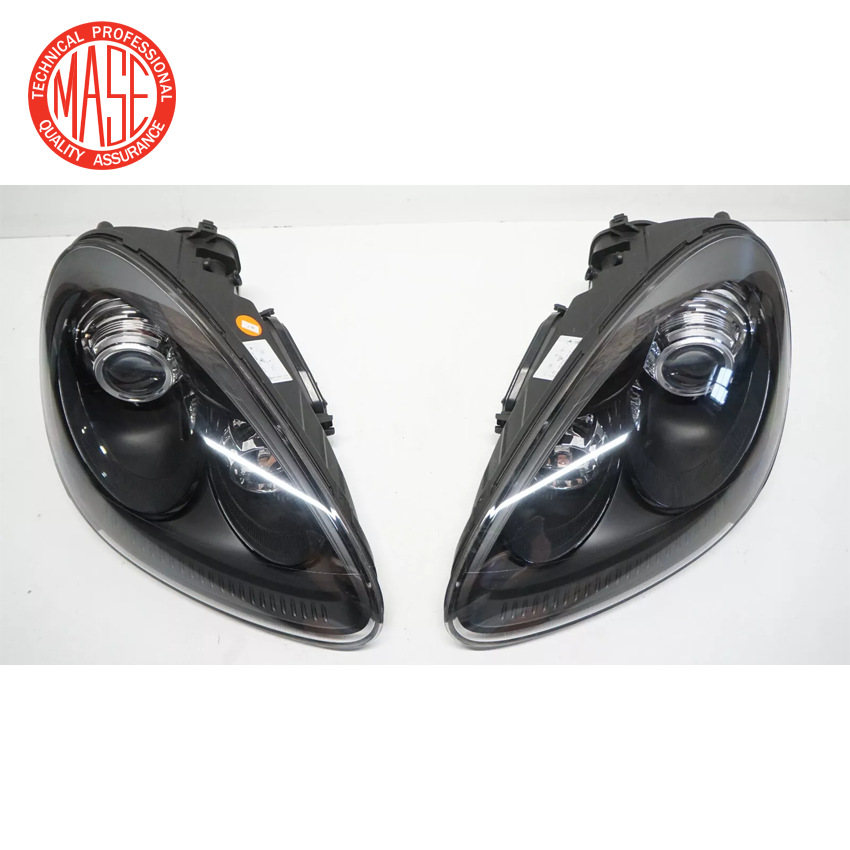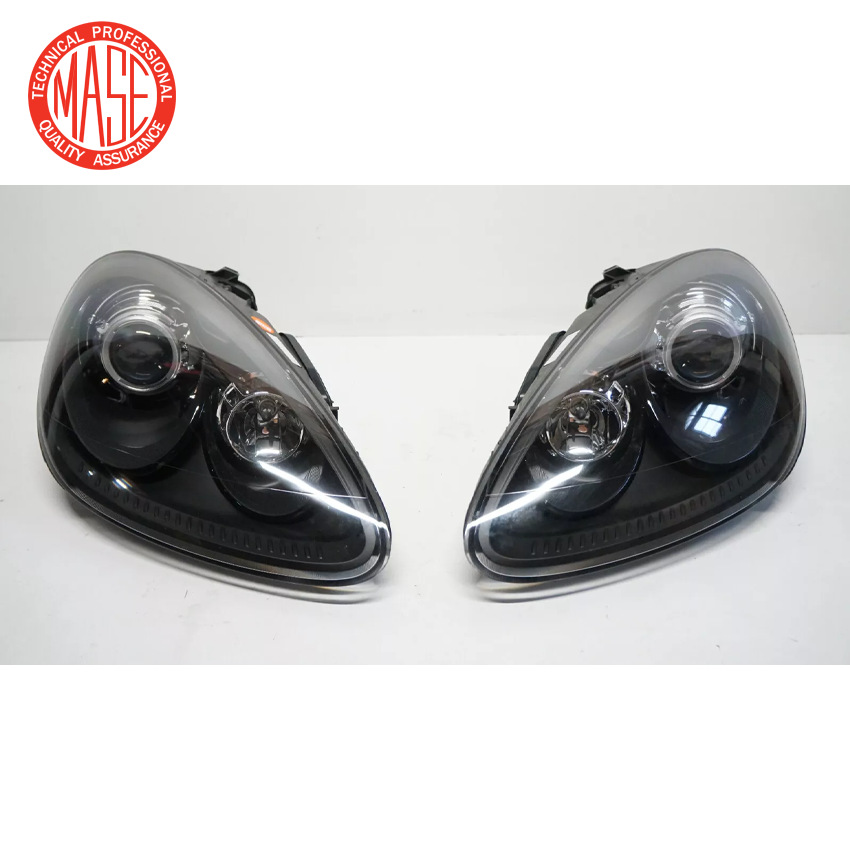 Left & Right Black Housing Headlight Assembly with LED DRL for Porsche Cayenne 2011-2014, Replaces 95863128200 95863128100