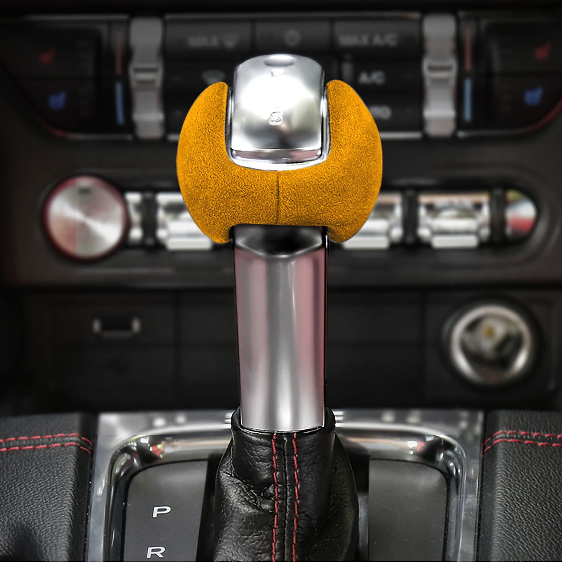 - Package Includes: One Alcantara suede gear shift knob cover (Yellow). A perfect interior modification part to personalize and protect your Mustang’s gear shifter.