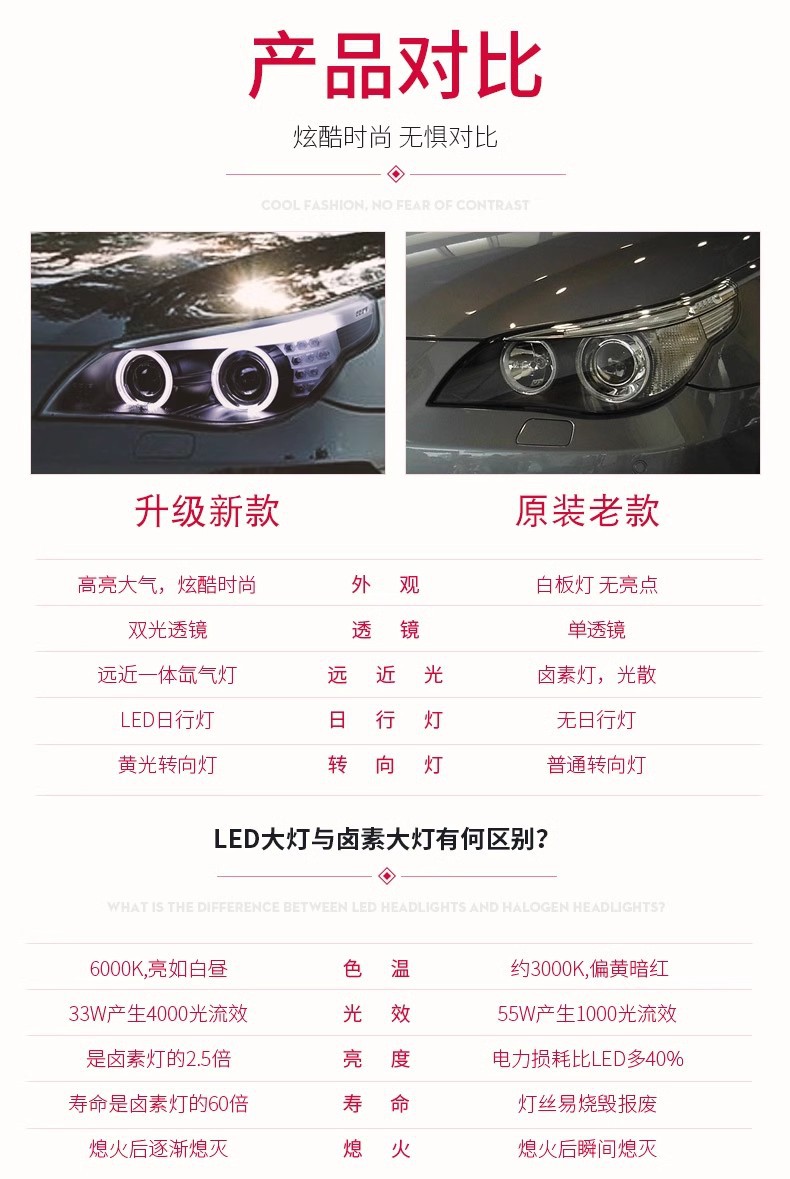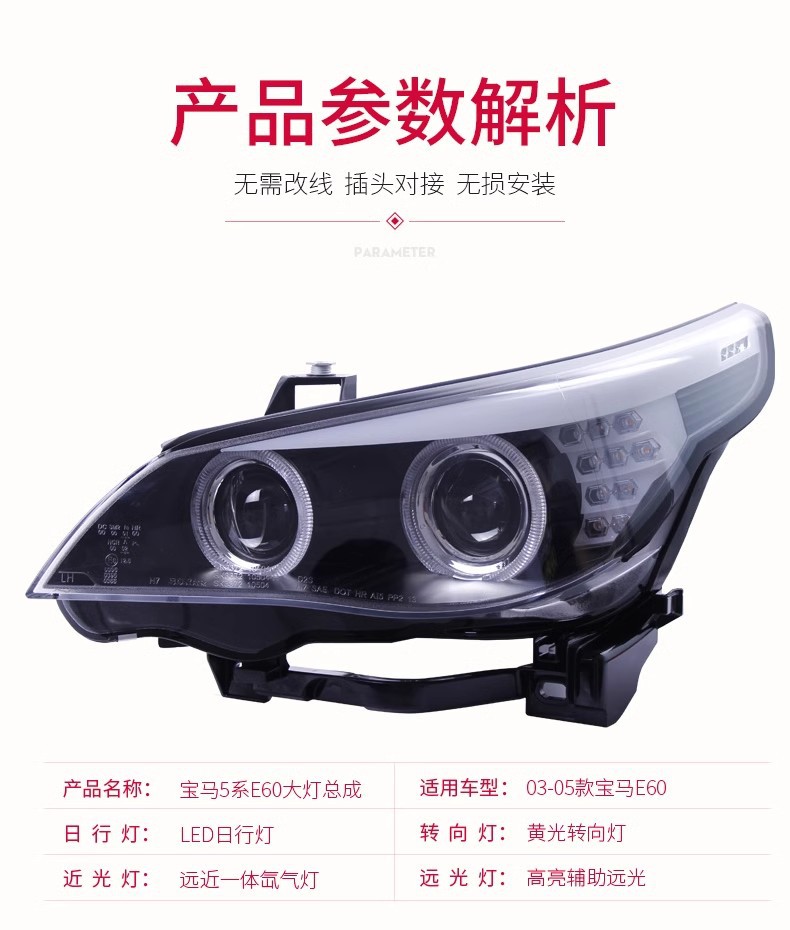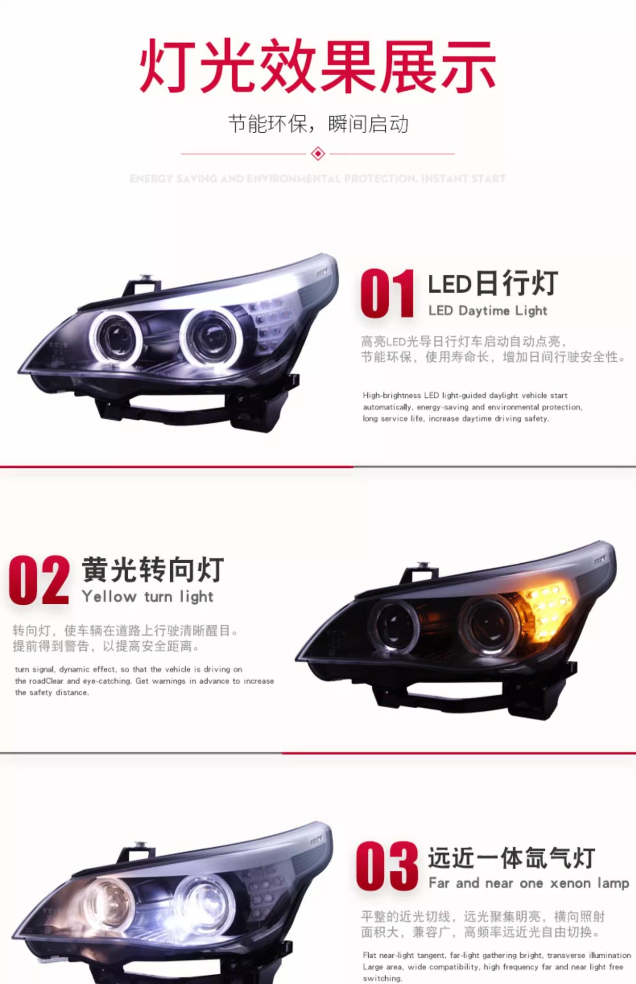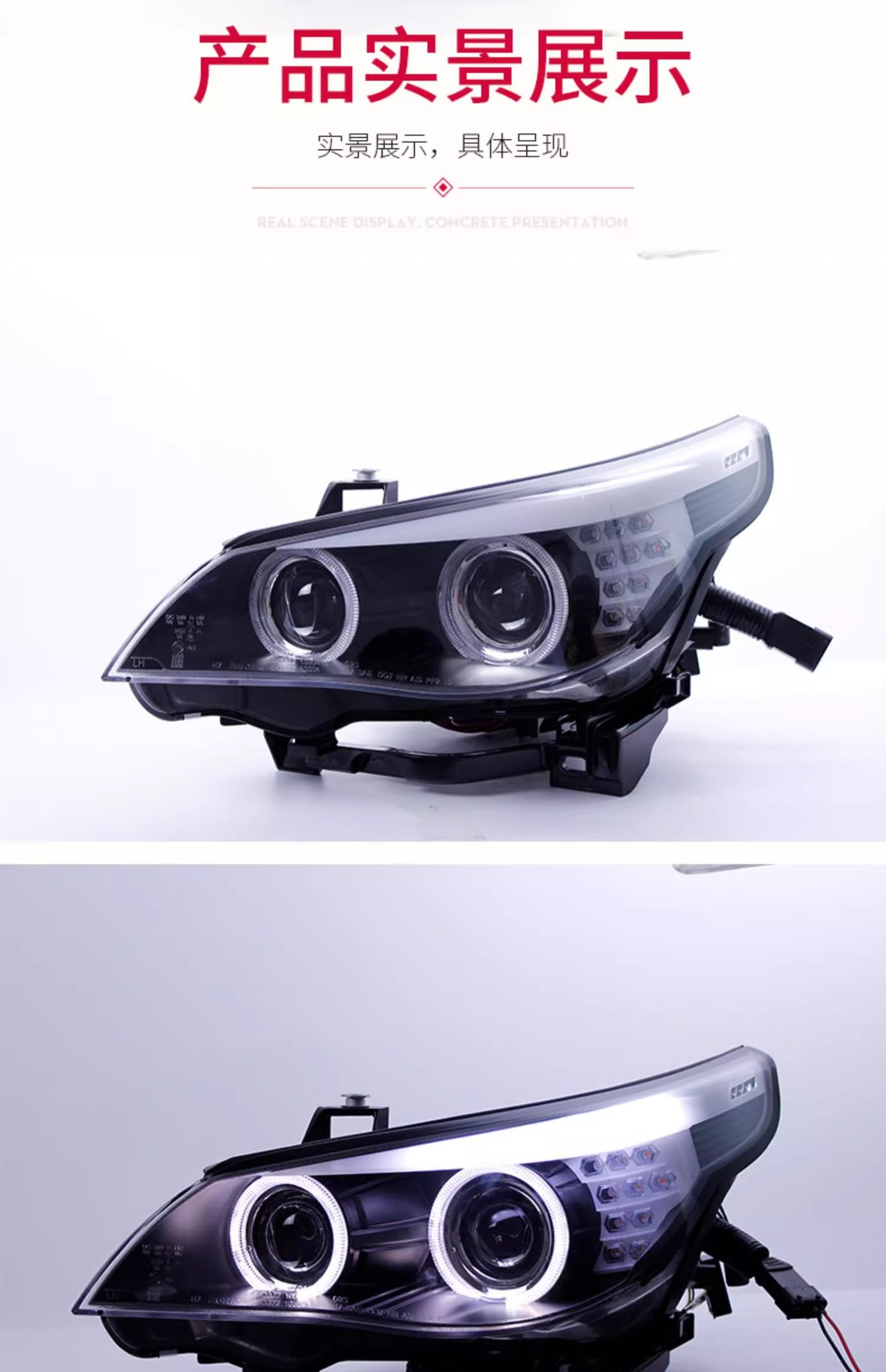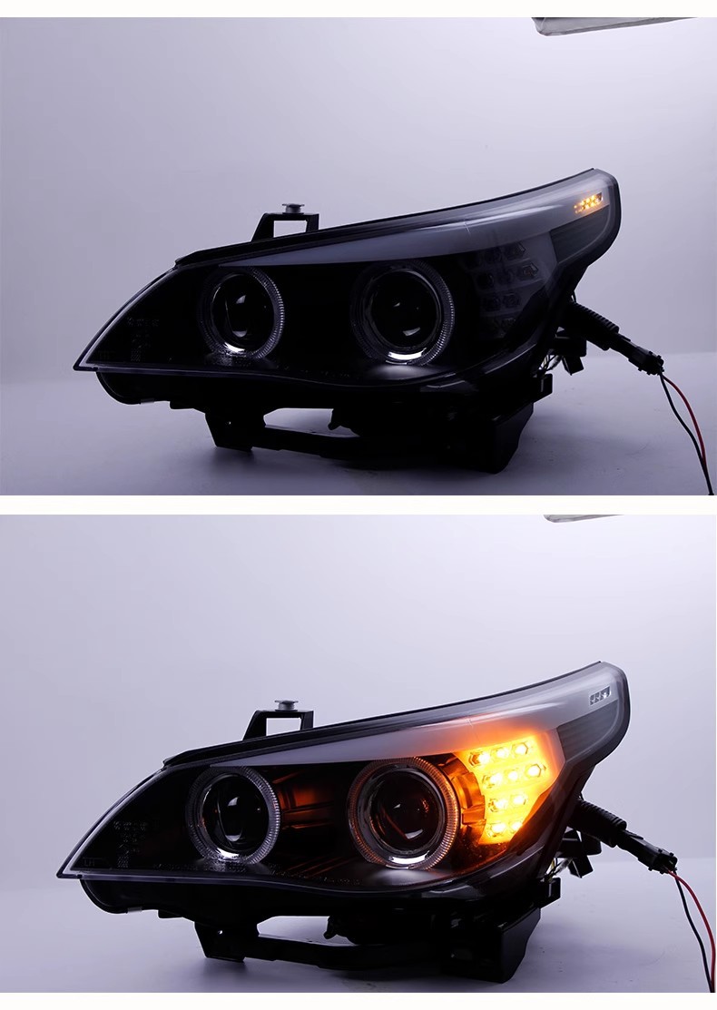 Left or Right Projector Xenon Headlight Assembly with Angel Eye LED DRL Yellow Turn Signal for BMW E60 5-Series 2003-2005