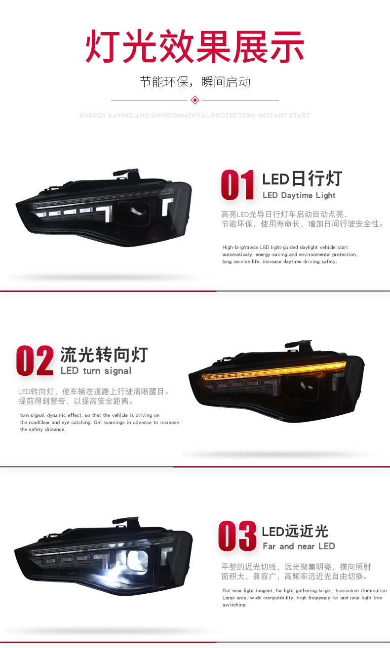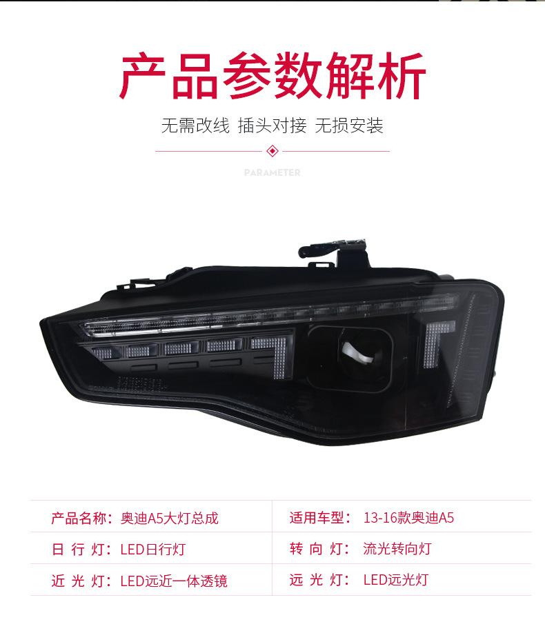Left/Right LED DRL Turn Signal Projector Xenon Headlight Assembly for Audi A5 (2013-2016)